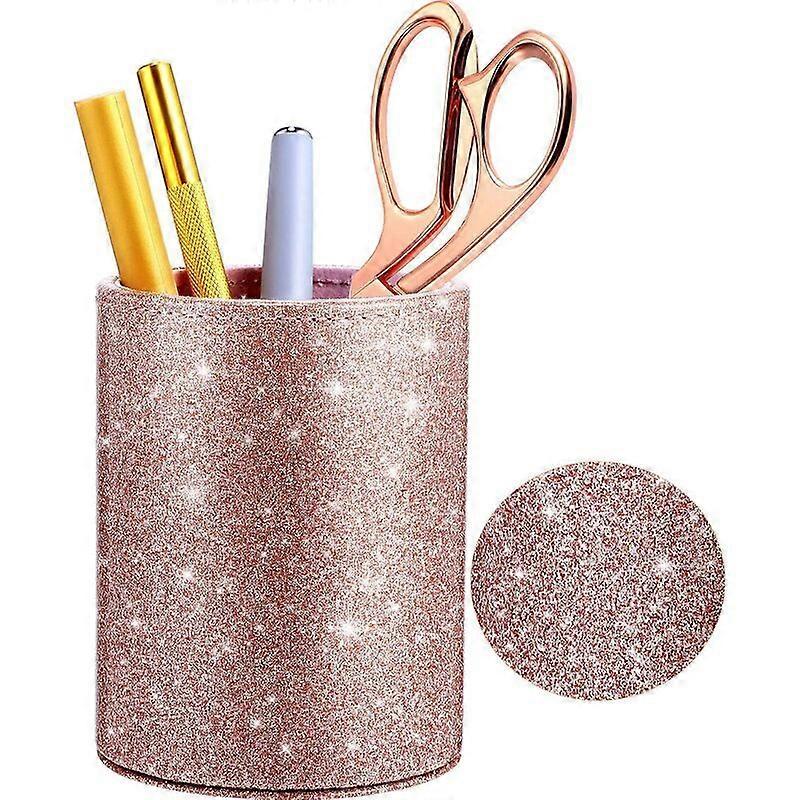 Glitter Pen Holder PU Shiny Pencil Cup for Women Girls, Luxury Makeup Brush