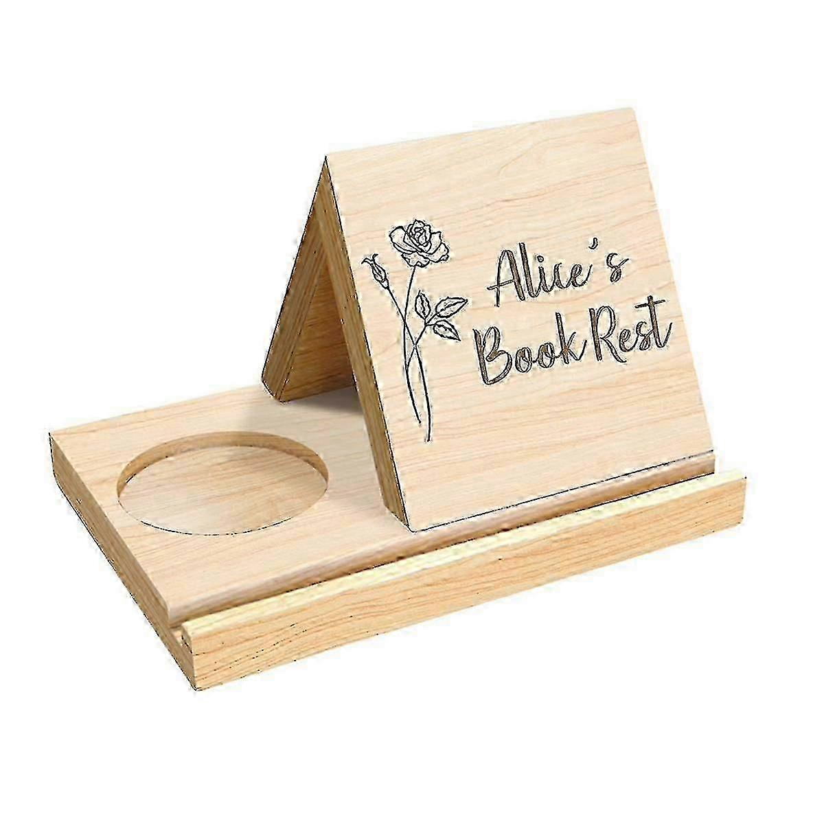 Personalized Wooden Triangle Book Stand With Coffee Cup Mug Holder,custom Birth Flower Book Page Holder,without Words