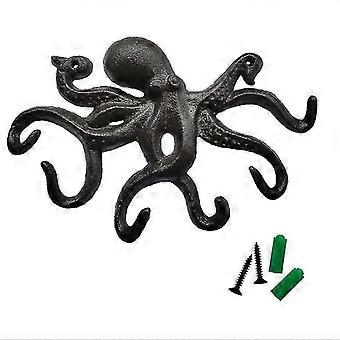 Octopus Key Holder For Wall Cast Iron Key Hooks Decorative Rustic Towel Hooks Wall Mounted Heavy Duty Coat Hooks With 6 Tentacles For Keys Towel Bags