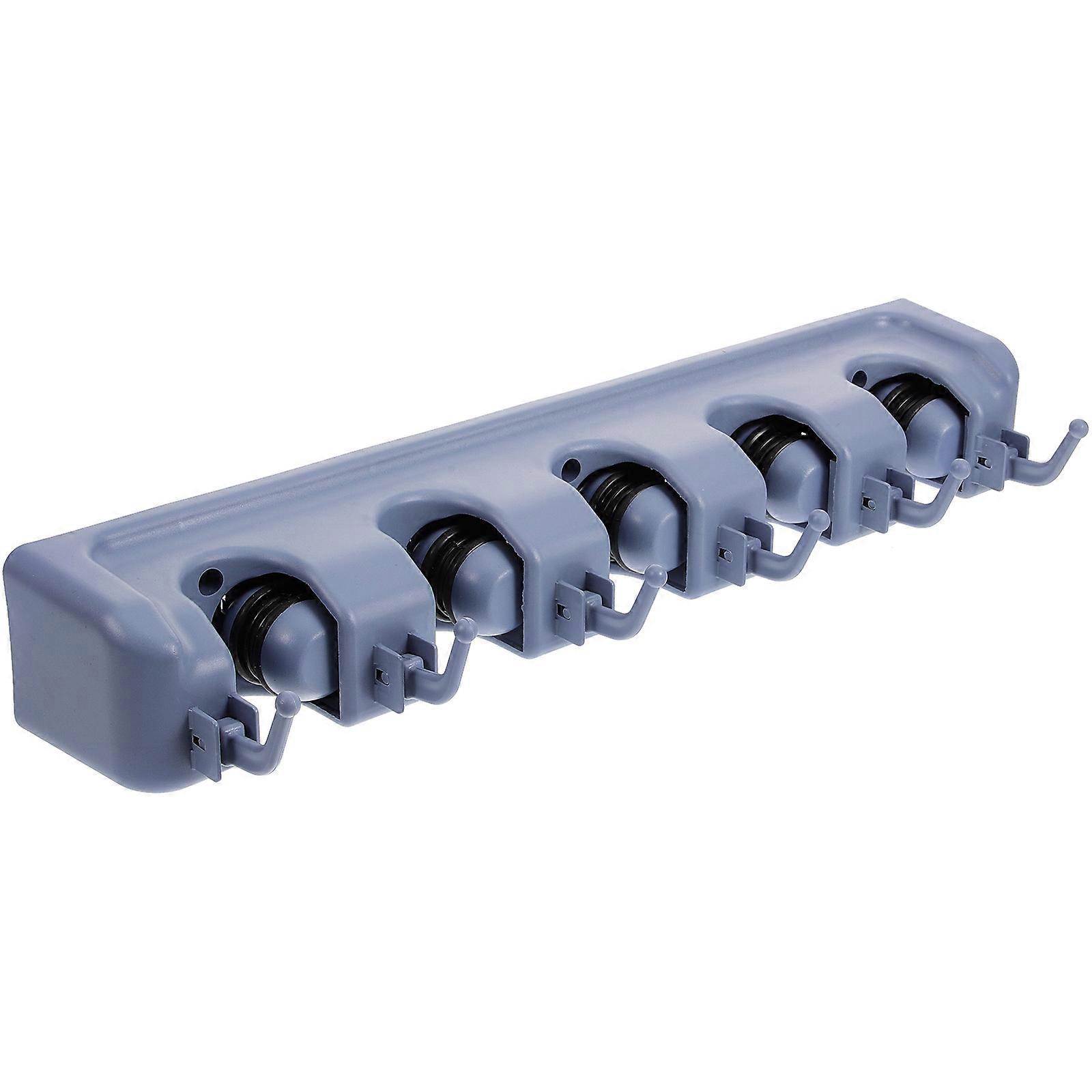 Blue ABS Plastic Wall Mounted Mop Holder with 6 Hooks for Bathroom Use Fits 40*3cm Size