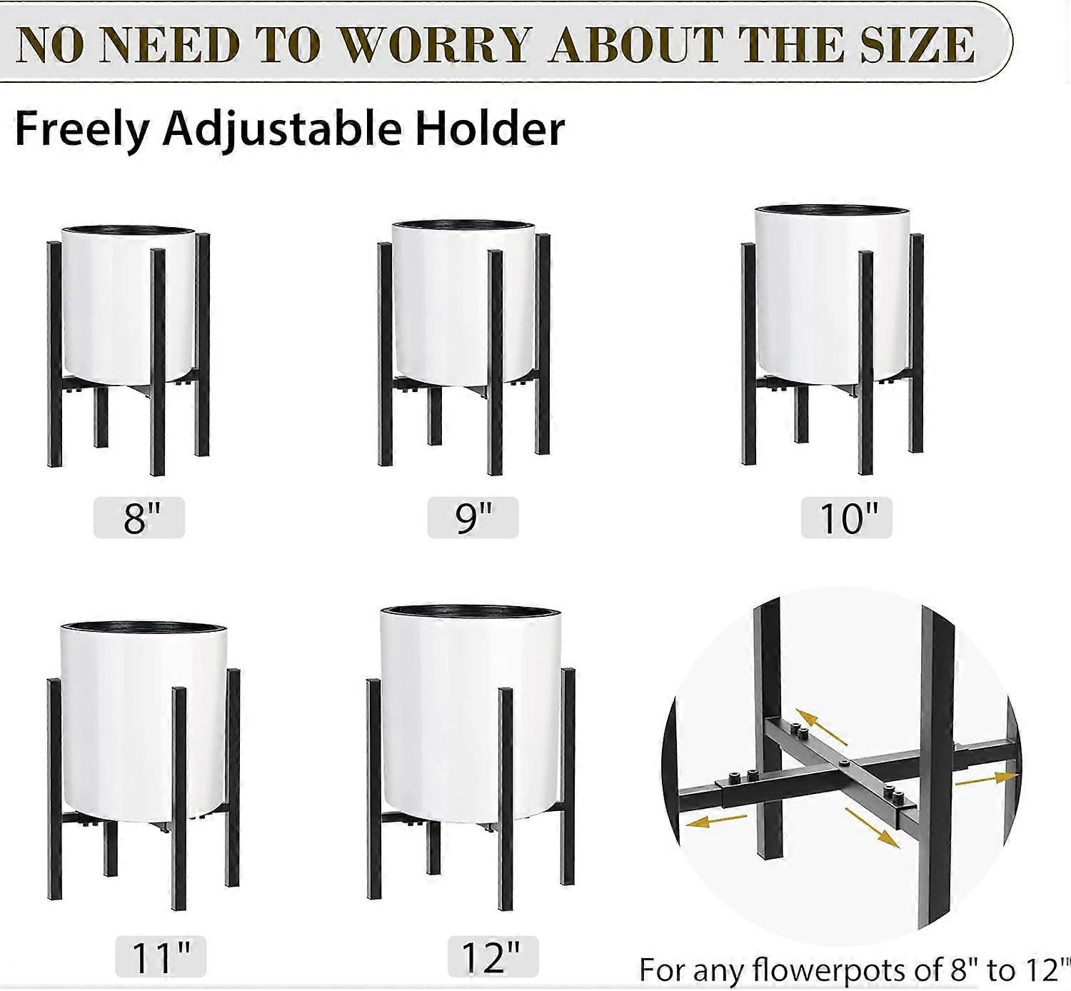 Adjustable Plant Stand, Iron Flower Stand for 8-12 Inch Flower Pot Flower Pot Stand with Legs for Garden Balcony Outdoor Home Patio - Black