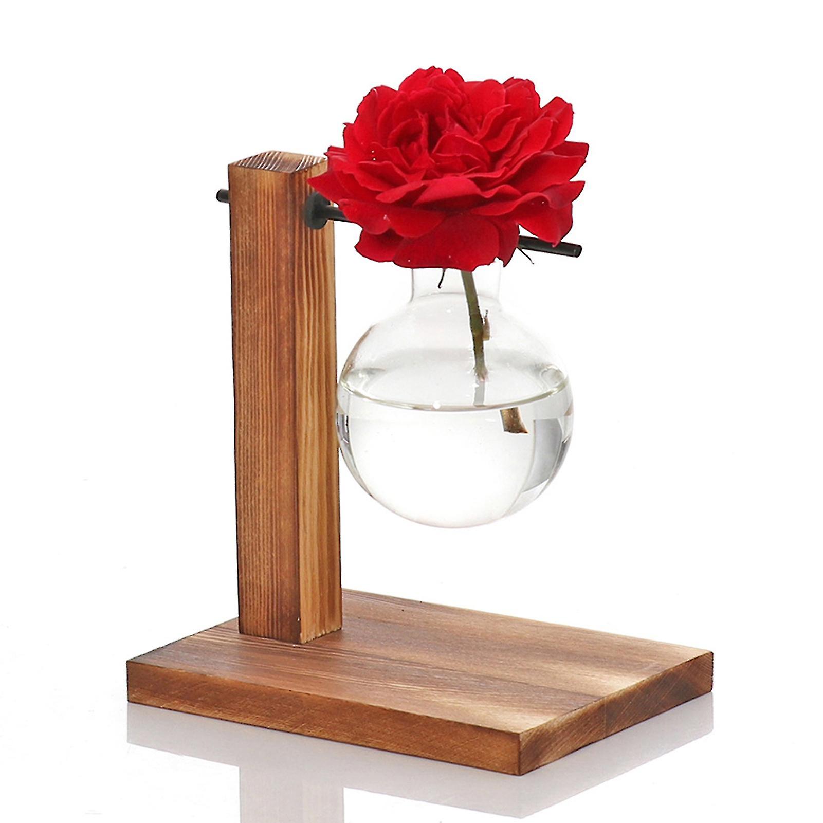 Plant Container Retro Stable Bottom Clear Wood Stand Glass Planter For Home