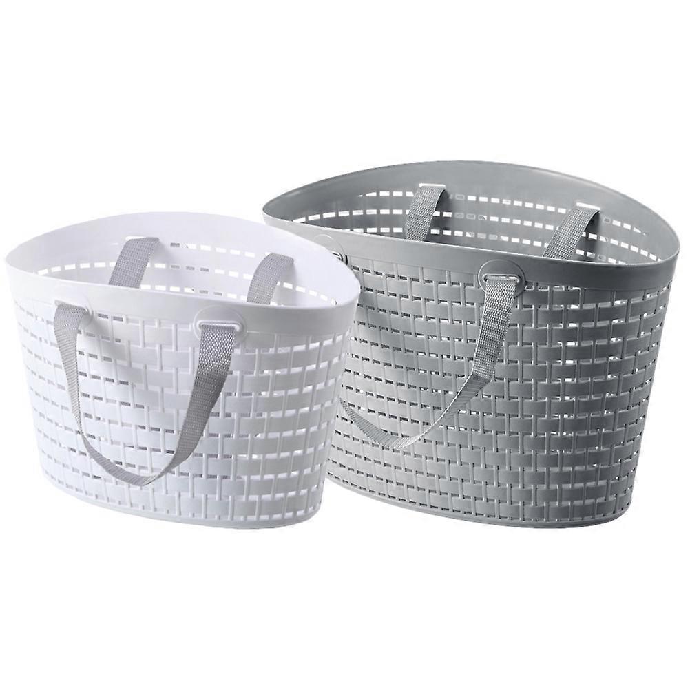 These are shower storage baskets designed for sundry storage. With double handles , it is easy for you to carry and transport things. This storage basket is very practical in shower use. It is perfect for bathroom products, fruit, vegetables, daily items and so on. Features -Color:Assorted Color -Material:Plastic -Size:28.50X21.00X16.50cm/11.20X8.25X6.48in -Size:34.50X28.00X20.00cm/13.56X11.00X7.86in - This storage basket would also be perfect for storing various other items, kid's toys, books, blankets, shoes, ball games, whatever you want. - The hollow design is beautiful and convenient to use, which can make the drain outside. - The storage basket designs with handles, easy to move and take to everywhere you want. - Perfect for many places, such as laundry room, bedroom, bathroom, closet, dorm, etc. - Made from , with excellent durability and practicality, long time use. Package list: 2 x Small Storage Basket 2 x Middle Storage Basket