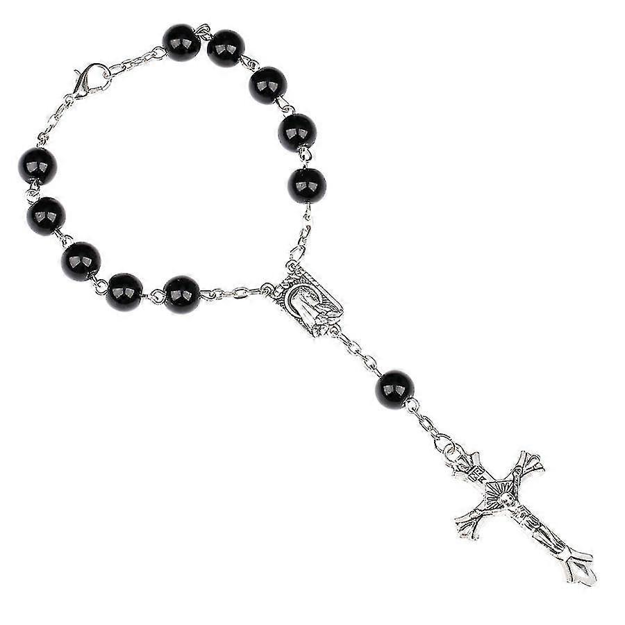 Rosary Beads Catholic, Cross Car Mirror Hanging Accessories for Women Blessing Rear View Mirror Pendant Car Decor Interior (D-S5)