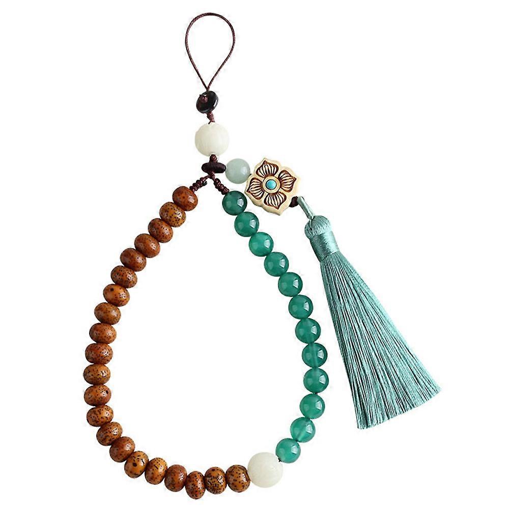 Mobile Phone Lanyard Beaded Creative Wood Beads Bodhi Beads Tassel Decor Phone Decorative Rope Assorted Color 0.39X0.39X7.47Inch Car Mirror Decor 1Set