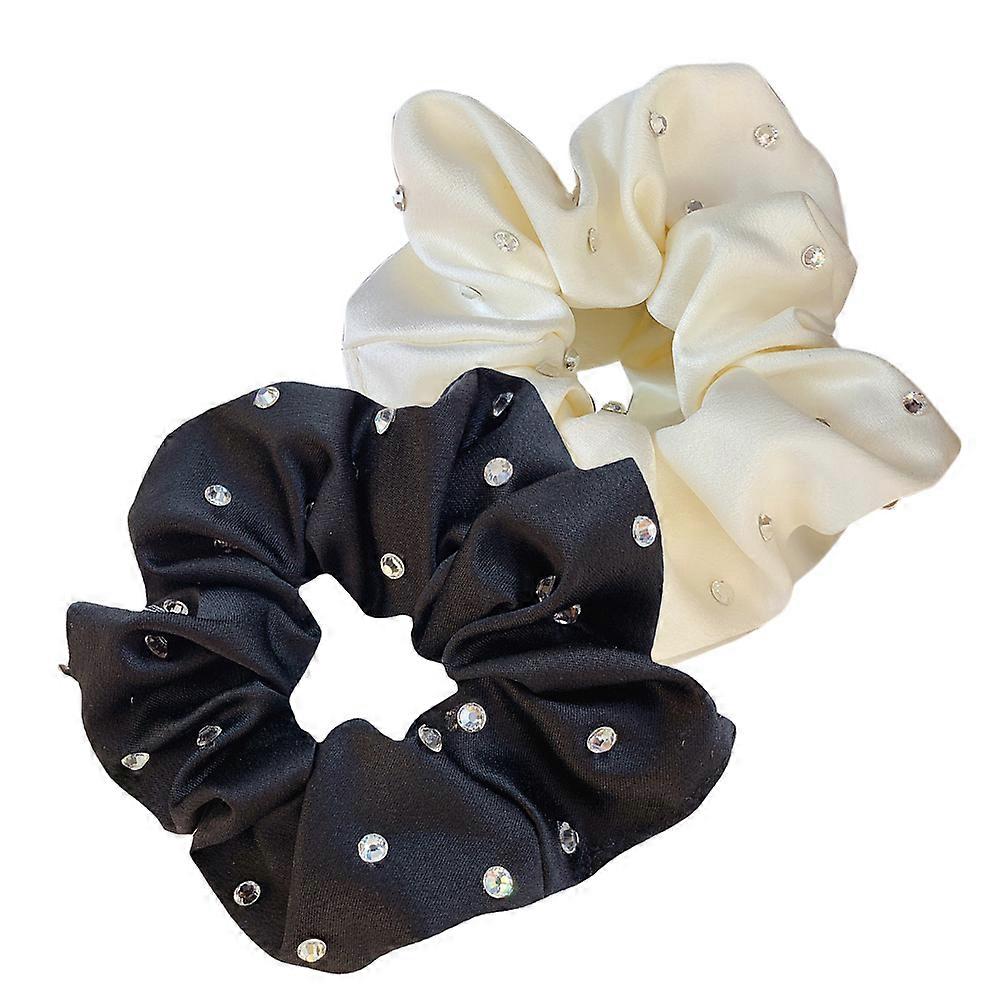 Rhinestone Hair Scrunchies 2PCS Large Sparkling Elastic Hair Rings for Women, Secure Hold High Ponytail Holders for Daily & Formal Wear