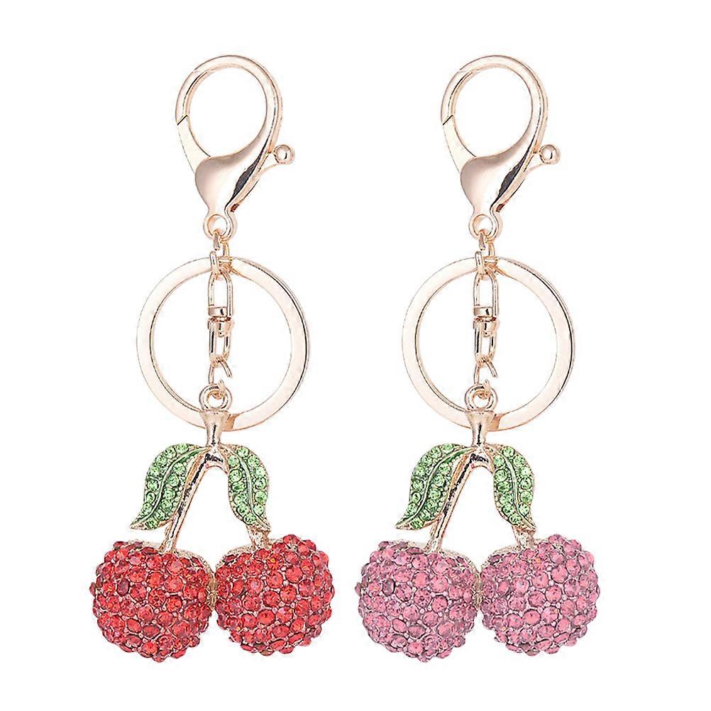 Rhinestone Cherry Keychain Alloy Bag Charm Decorative Pendant Purse Accessory Creative Keychains for Women Gift