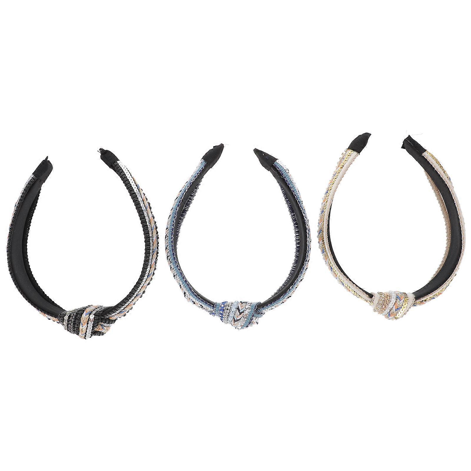 Rhinestone Crocheted Headband Beaded Headdress Linen Material Daily Life 3Pcs