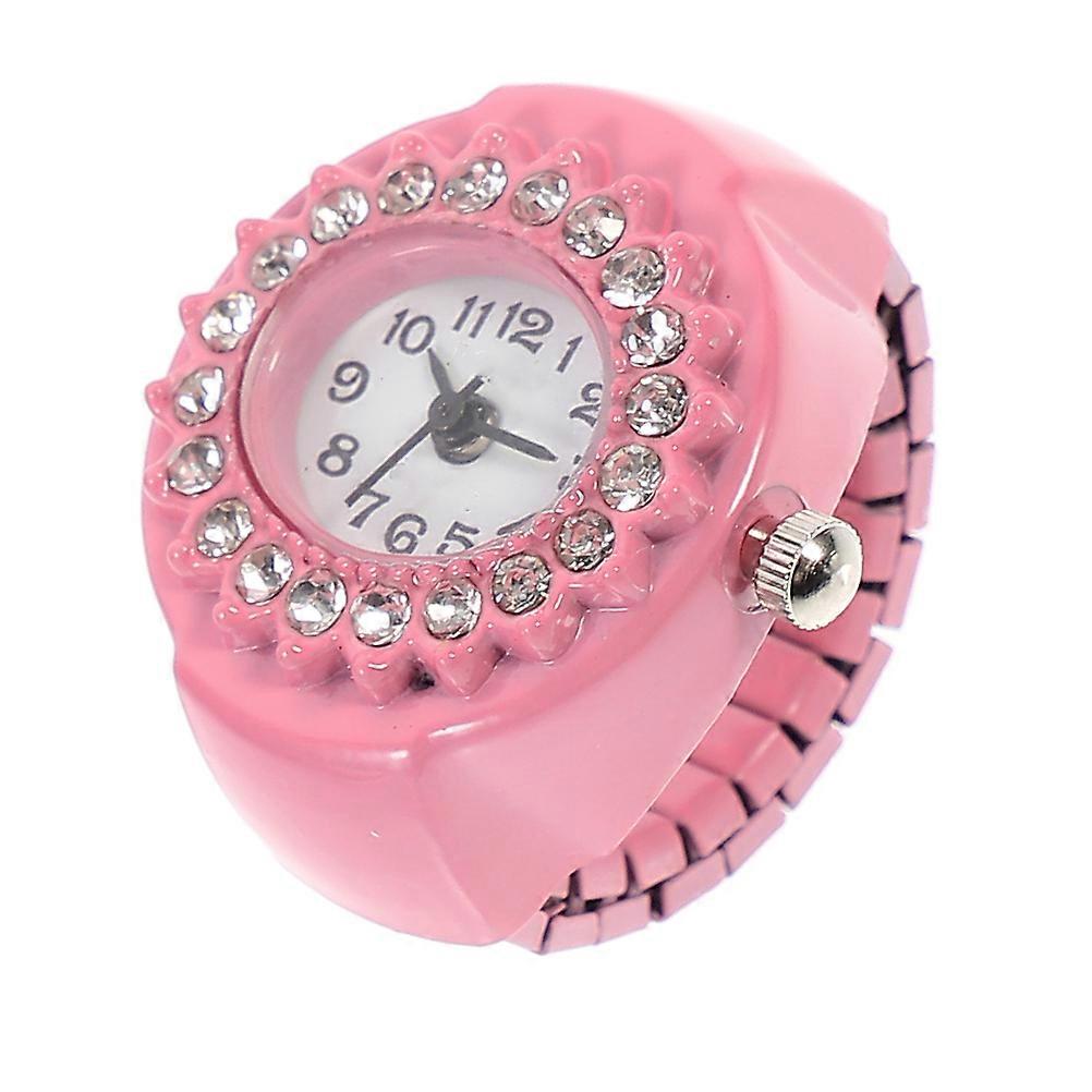 Pink Rhinestone Decorative Watch Ring Fashion Jewelry Synthetic Material Small Size