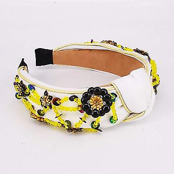 Rhinestone Crystal Wide Headbands Knot Turban Fashion Vintage Hairband Elastic Hair Hoops Hair Accessories For Women Girls,purple (white)