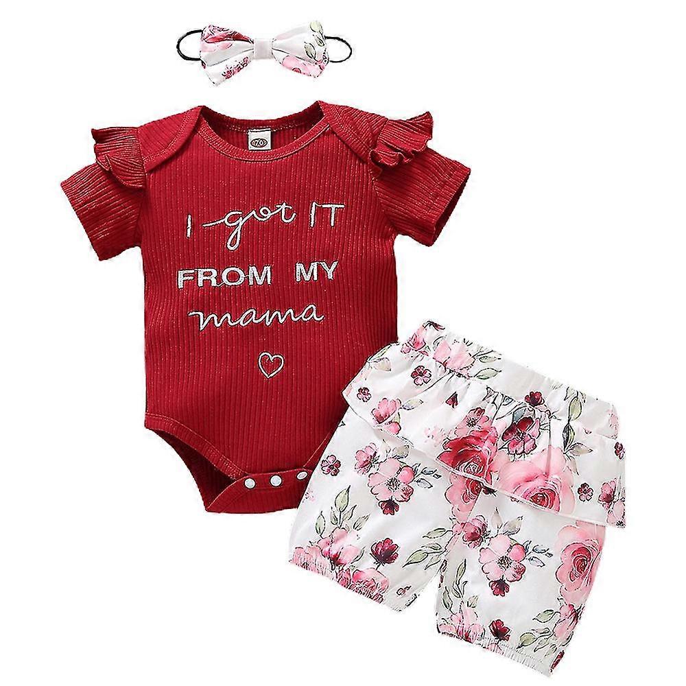 Newborn Infant Baby Girl Short Sleeve Outfits Romper Shorts Headband Summer 3pcs/set