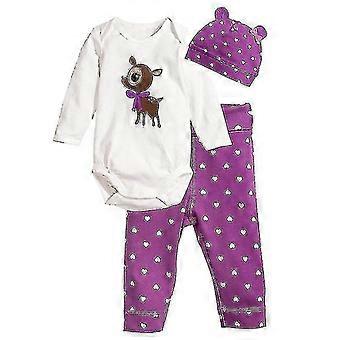 Description 3Pcs Newborn Toddler Baby Boys Girls Long Sleeve Printed Romper Pants Hat Set Outfit Winter Casual Cute Clothes Specification: Material: Cotton Blend Pattern: Novelty, Cartoon Occasion: Casual, Formal, Party Season: Spring, Fall, Winter Sleeve Length: Long Sleeve Package Include : 1 set Kids Outfits Note: 1.Please allow 2-3 cm difference due to manual measurement. 2.Besides different computers display colors differently, the color of the actual item may vary slightly from the below images, thanks for your understanding.