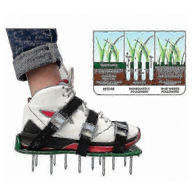 Garden Lawn Aerator Shoes Sandal Spike Ventilation Pair Of Grass Green Tool, Black 30 X 13cm