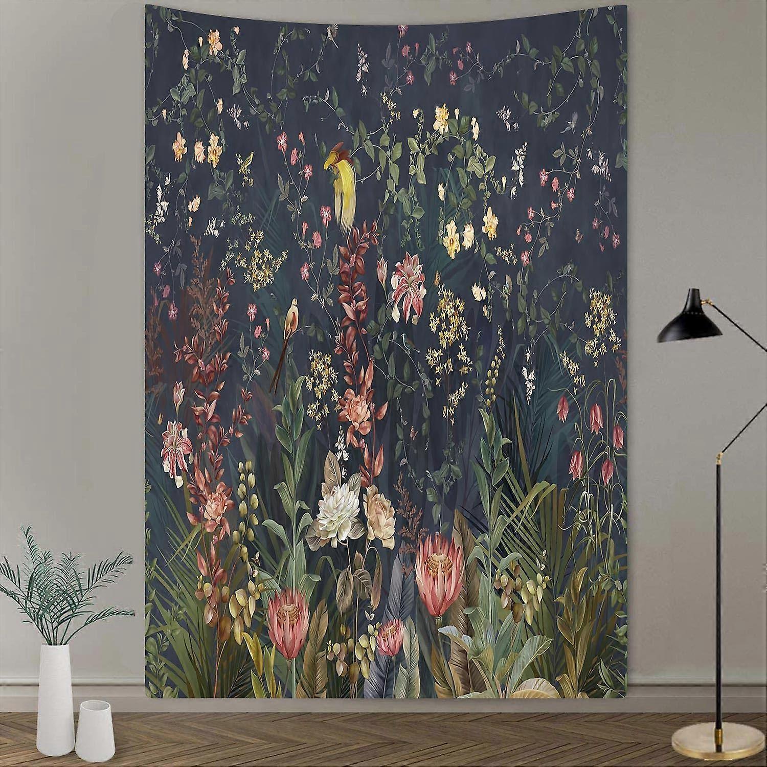 Jungle Garden Flowers Tapestry Wall Hanging Natural Plant Floral Bird Nature Tapestry 30''x 40'' Tropical Botanical Aesthetic Tapestry for Bedroom Liv