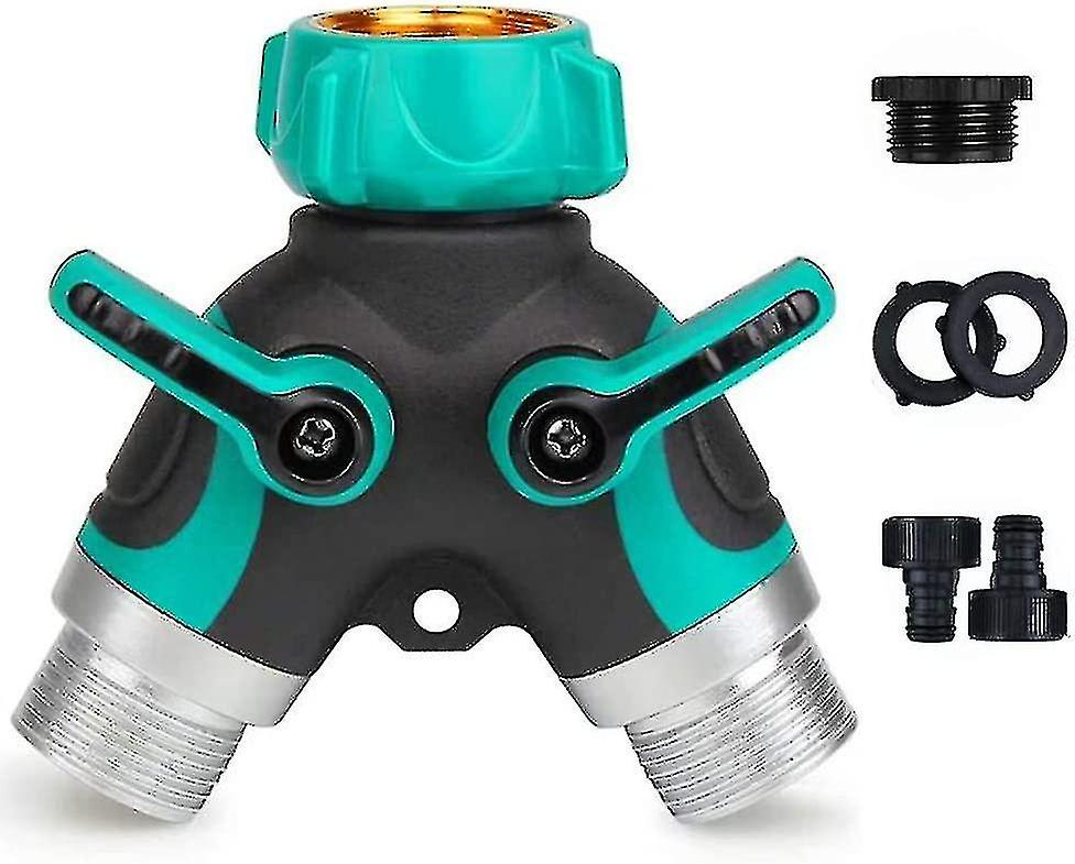 Garden Hose Splitter, 2 Way Garden Hose Connector Water Taps Distributor, Outdoor Double Y Valve Tap Manifold Adjustable And Lockable Rubberized Grip