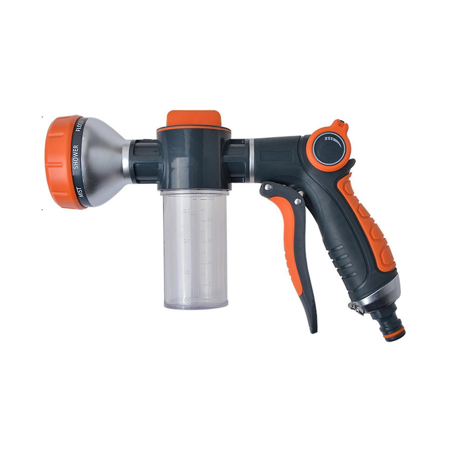 Adjustable Spray Patterns: Compared with other similar products, our high-pressure water hose nozzle can be easily adjusted to deliver either a powerful stream or a gentle mist. There are 8 different watering patterns to choose from.High-Quality Materials: Our water sprayer is made of premium materials for impressive durability and toughness. The sturdy construction ensures it can withstand prolonged use without showing signs of wear.Ergonomic Handle: Our high-pressure water hose nozzle comes with an ergonomic handle, which makes your water flow controlling much more convenient and easy to grip.Multi-Purpose Use: Characterized by wide application, this versatile tool is ideal for washing horses, houses, gardens, pets, cars, and more, saving a lot of time and effort to some extent.Efficient Cleaning Solution: This product fits all standard garden hoses. Leakproof and easy to use. And, it offers a convenient and efficient way to clean various surfaces and items around your home or business. Description: Made from high-quality materials, this versatile hose sprayer is designed to withstand extended use without showing signs of wear and tear. Our high-pressure water hose nozzle has 8 different spray patterns. This product can be easily adjusted to deliver either a powerful stream or a gentle mist. Save time and money with this efficient water sprayer that cuts down car wash time to just 5 minutes, uses less soap, and cleans better than ever before. Moreover, the water hose nozzle comes with an ergonomically designed handle, easy to grip and use. The adjustable foam setting allows you to easily control the amount of soap dispensed by simply turning the rotary switch. Fill the detergent bottle and choose from various settings for the perfect amount of foam. You can even turn off the soap and spray just water. Item Name: Garden Hose Nozzle Material: Plastic Features: Ergonomic Handle, Universal, Simple Installation Size Details: L: 25.1cm/9.88", W: 17.3cm/6.81" (Approx.) Notes: Due to the light and screen setting difference, the item's color may be slightly different from the pictures.Please allow slight dimension difference due to different manual measurement. Package Includes: 1 x Garden Hose Nozzle