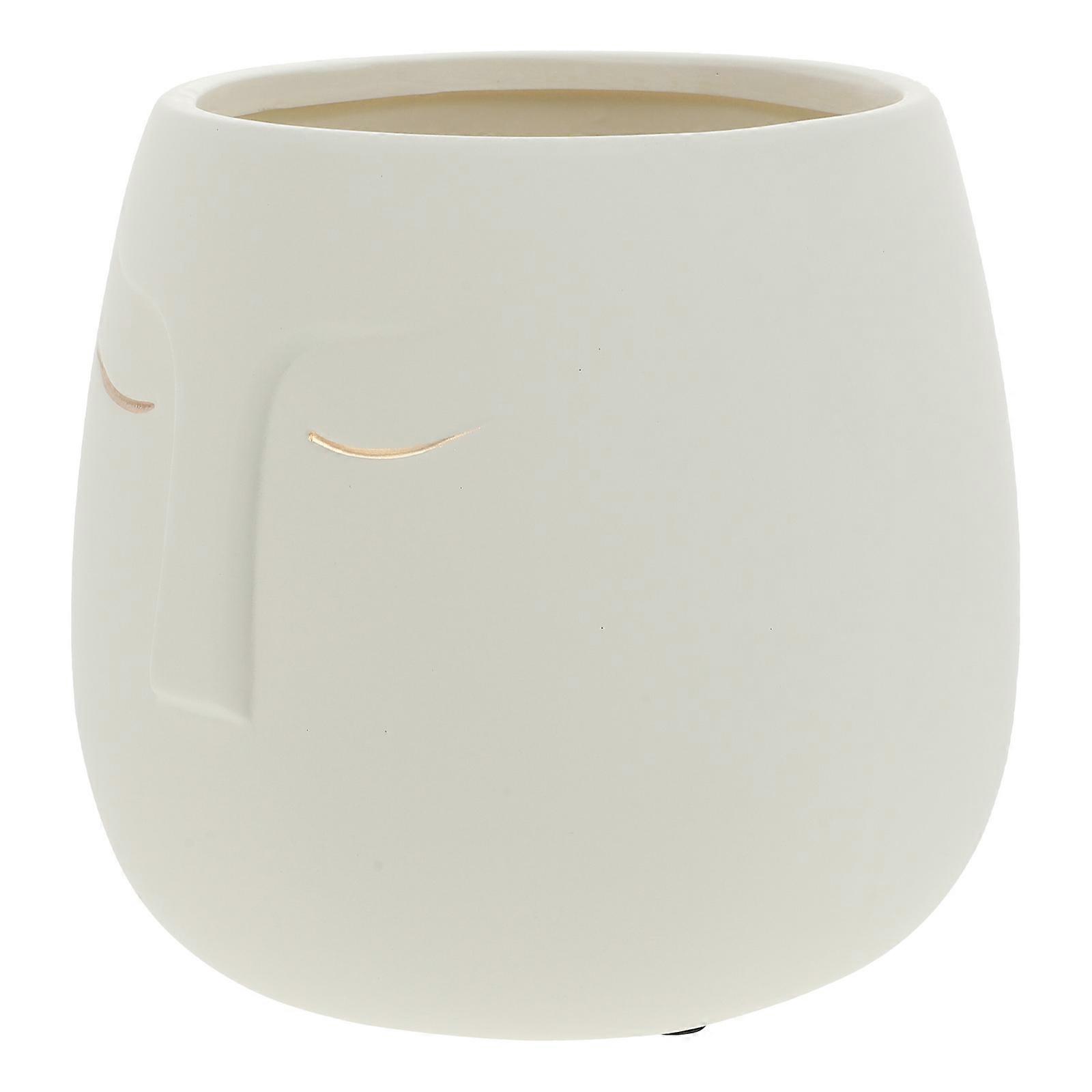 Garden Flower Pot Ceramics Flowerpot Succulent Plant Container Abstract Face Minimalist Desk Planter 16.5x16cm Beige 1Pack
