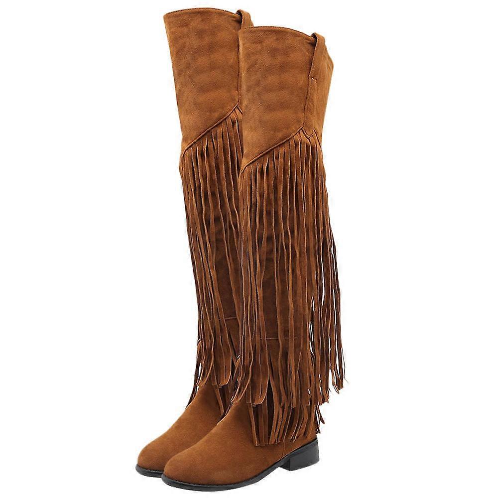Brown Over Knee Boots For Women With Low Heel Suitable For Winter Fashion 1 Pair