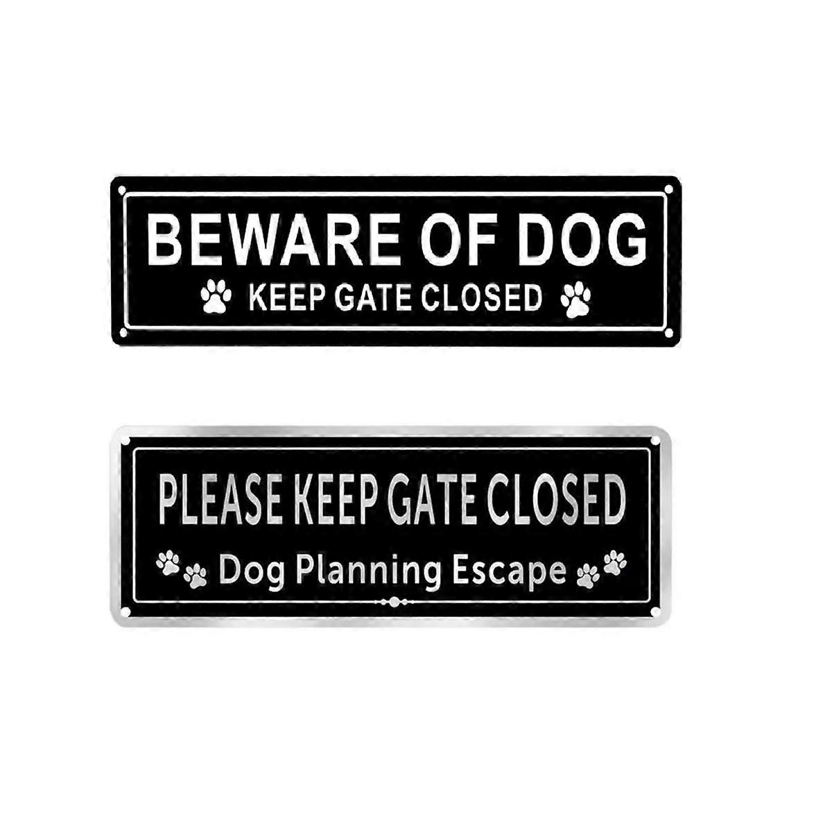 The beware of dog keep gate closed sign is made of aluminum alloy, sturdy and , weather proof and good for outdoor use Noticeable size but not too large, perfect to fit on a regular sized front door Compared to other similar signs that fades quickly in the sunlight, our beware of dog sign will not fade or warp; still stays in place and look nice even in high humidity and torrential rain Easy to install with 4 pre-drilled holes Colour:Black Material:Aluminum alloy Size:About 30 x 8cm Package Contents: 1 x Beware of Dog Sign 1 x Keep Gate Closed Sign Only the above package content, other products are not included. Note: Light reflection and different displays may cause the color of the item in the picture a little different from the real thing. The measurement allowed error is +/- 1-3cm.