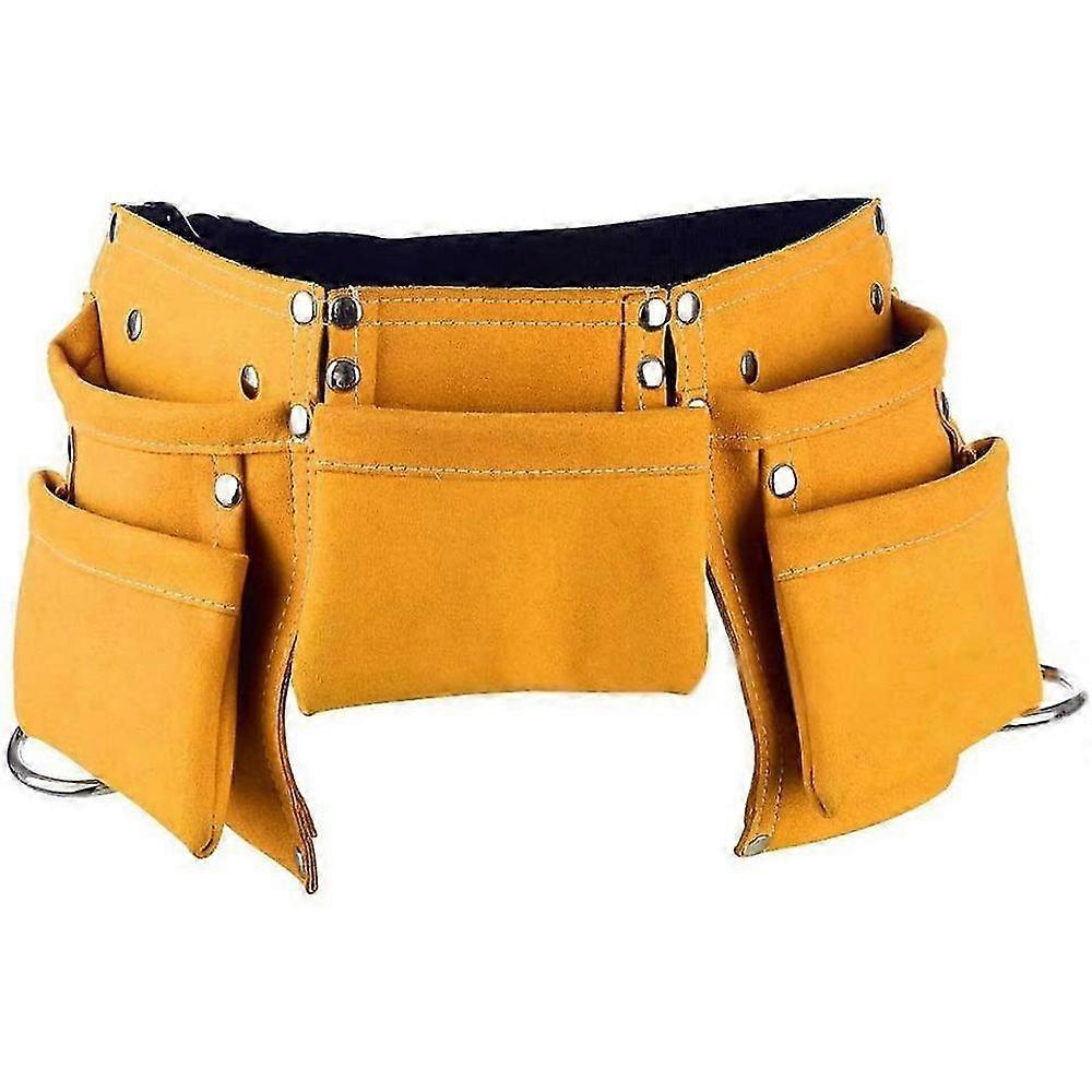 Multi-Pockets Kids Tool Belt, Children's Leather Tool Belt Construction Tool Pouch Bag (Yellow)