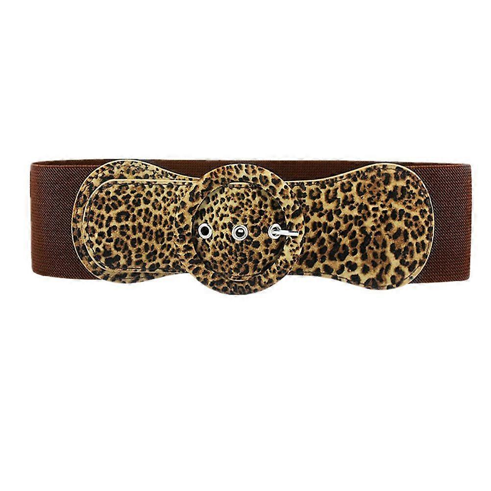 Elastic Wide Belt Imitation Leather Leopard Grain Belt Dress Stretch Thick Waist Belts for Women Ladies