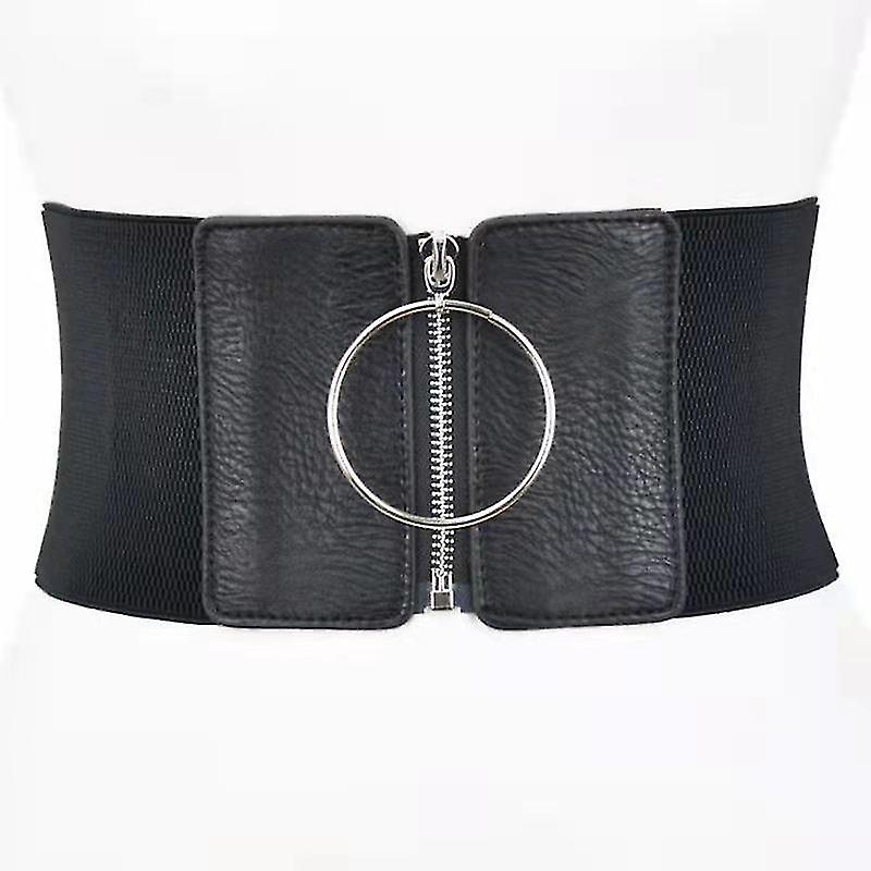 Wide Belt For Women Elastic Dresses Belts Female Big Metal Circle Ring Black Ladies Waist Strap