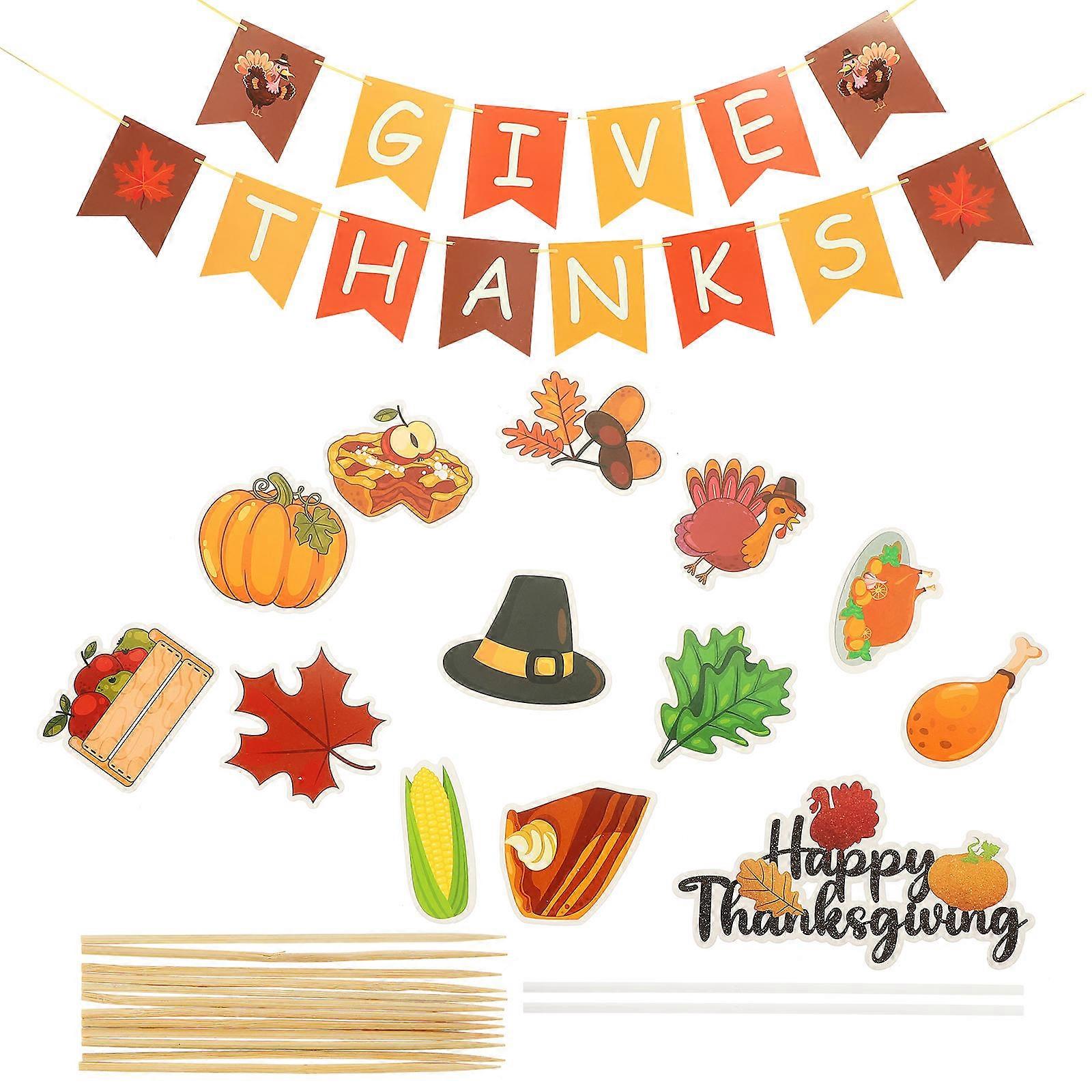 Party Cake Picks Delicate Cupcake Decors Thanksgiving Theme Cartoon Cake Picks Party Banner For Cakes Dessert 1 Set