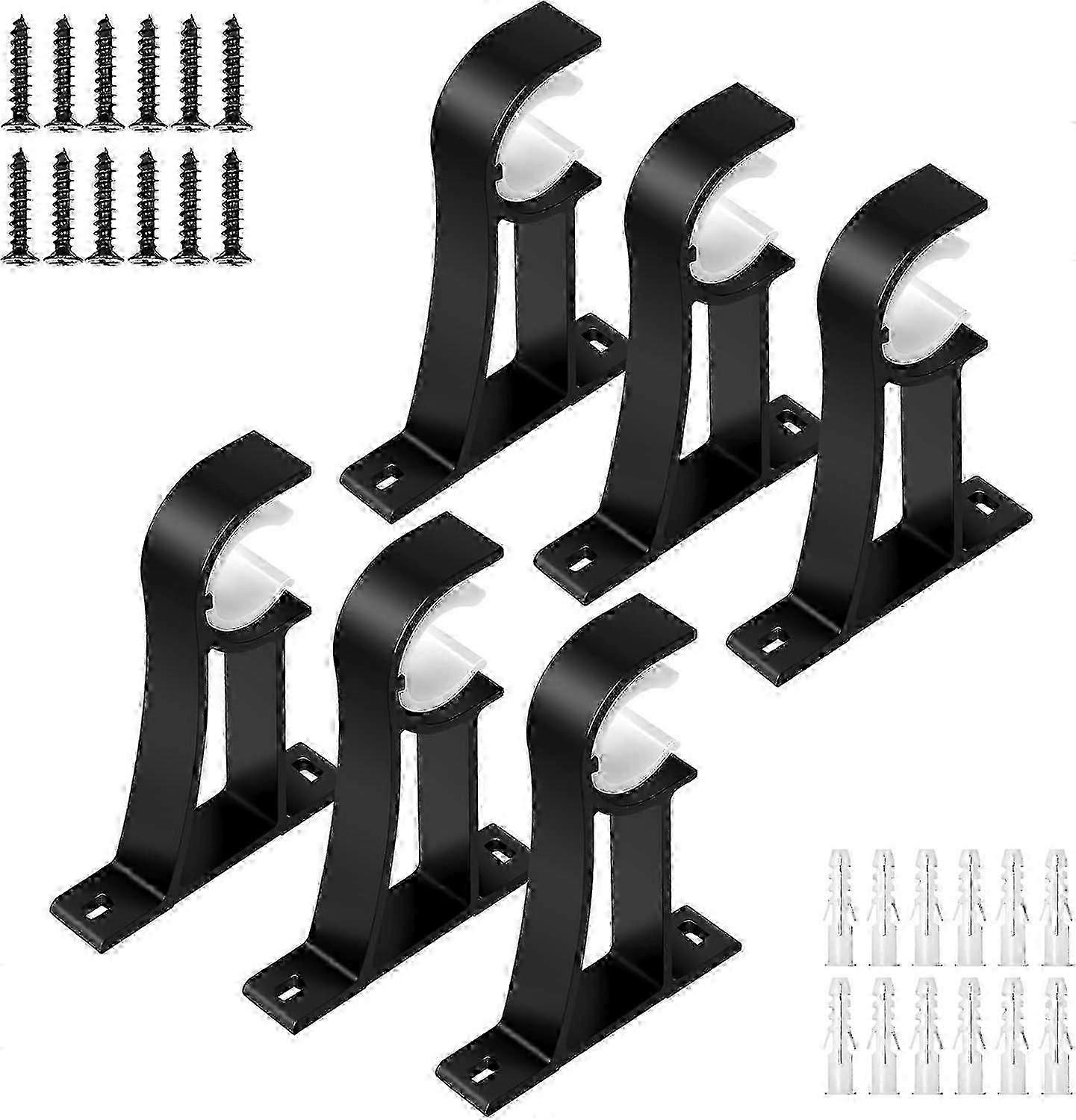 Plastic Buckle: The curtain rod brackets are designed with a removable plastic buckle, which can lock the rods in place to prevent the rod from slipping and scratching when opening or closing the curtains. Compared with other rod brackets, our curtain rod brackets are more convenient and safer to use.Sturdy Material: The curtain rod bracket is made of high-quality aluminum alloy, with ideal hardness, strong capacity and not easy to deform. Exquisite plating and black luster on the exposed parts to prevent rust, very sturdy and durable, you can use curtain brackets both indoor and outdoor.Universal Size: The curtain rod brackets can accommodate rods from 25 mm to 30 mm in diameter. The curtain brackets for rods have a removable plastic buckle. When you remove the buckle, it can be matched with 30mm-35mm curtain rods, very flexible, can easily fix most curtain rodsWide Application: The black curtain rod brackets feature modern and elegant style, smooth appearance and bright color, matching well with different home decoration styles, such as window rod, closet rod, wardrobe rod, shower rod. Perfect for bedroom, living room, patio, bathroom, office or kitchen.Easy Installation & Service: The package comes with 6 curtain rod brackets and matching screws and anchors. Curtain rod hooks with sturdy screws, each can hold up to 6.8kg. Withstand heavy/light draperies without problem.