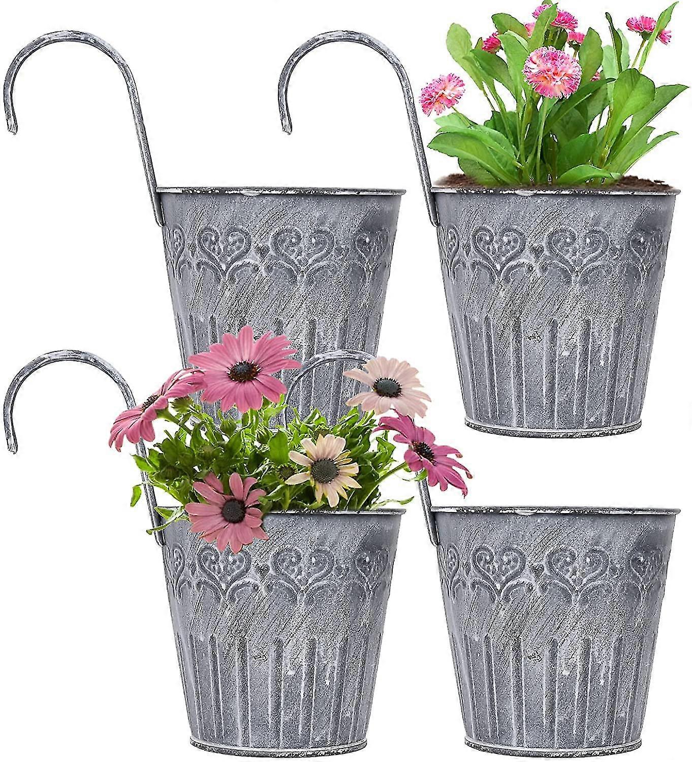 Pack Of 4 Hanging Flower Pots, Balcony Hanging Pots, Hanging Flower Pot Made Of Metal, Retro Iron Hanging Flower Pots With