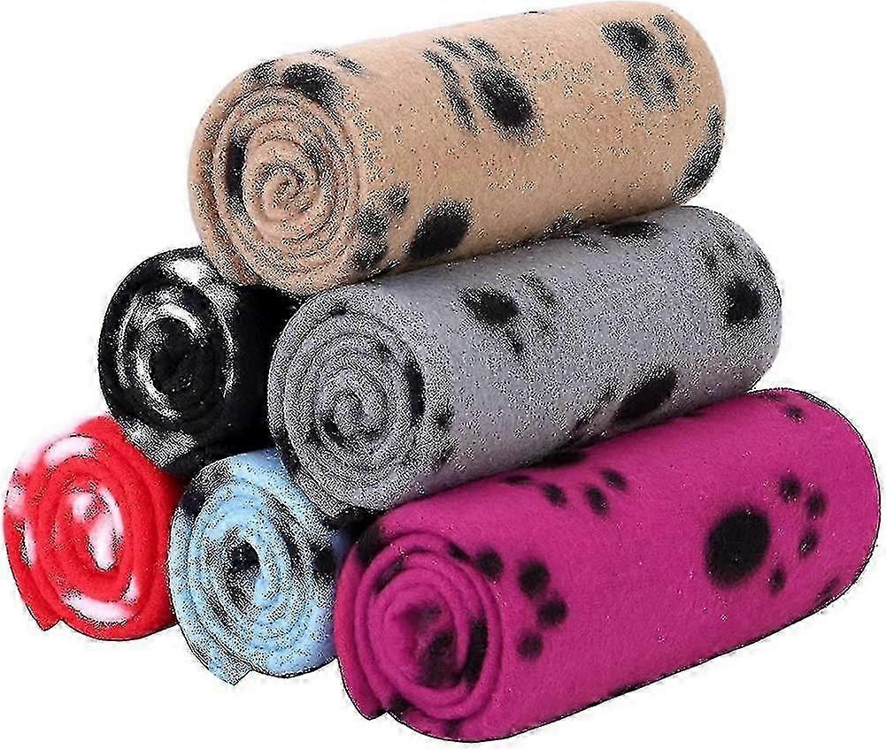 Pack Of 6 Paw Print Blanket Dog Cat Soft Warm Blankets Washable Sleep Mat