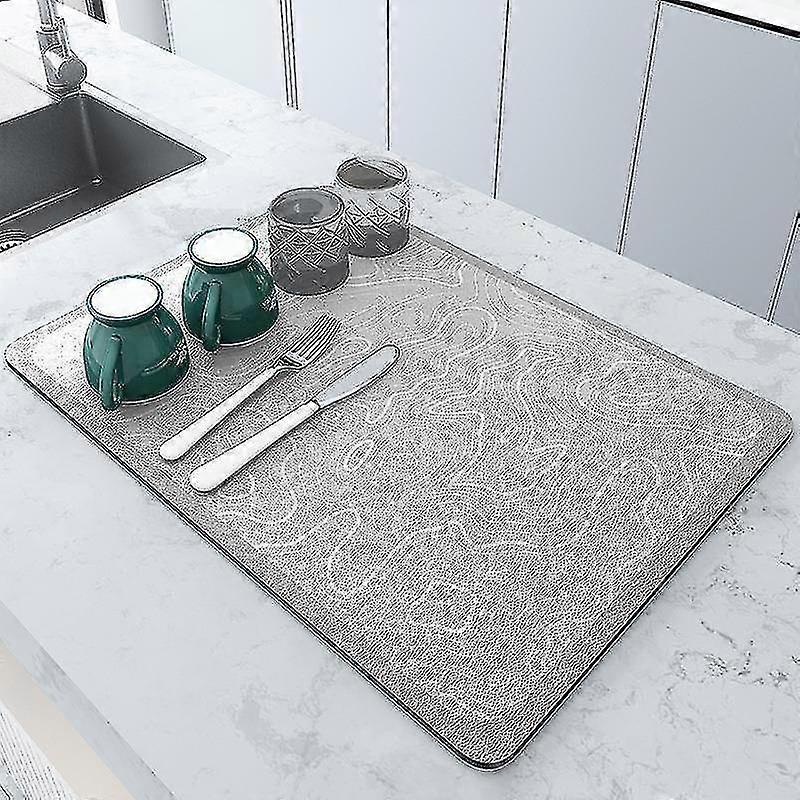 Quick Drying Drainer Mat - The thick drainer mats are breathable and highly absorbent, catches drips under a dish rack or place pots, pans, serve ware and glassware directly on the mat, keep the countertop clean and tidy at all times. Cushioned Water Absorption Mat - The soft cushion can protect tableware and glass from chips and scratches, it also can protect your countertop from damage and keep clean. Rubber Backing - The non-slip rubber backing keeps everything in place, no worry about tableware slipping. Easy to Clean - It can be cleaned quickly by just rinsing, and it dries quickly and naturally without machine drying. Durable and foldable, simply fold up and throw in a drawer or cupboard when not in use. Multiple Usage - Suitable for kitchen, sink, dining table, pet bowl mat etc. You can let it catches drips under a dish drying rack to keep the counter dry and clean, or you can place bottles, pots, pans, plates, bowls, cups, knives, silverware, serve ware, glassware, stemware, tableware and so on directly on the mat.