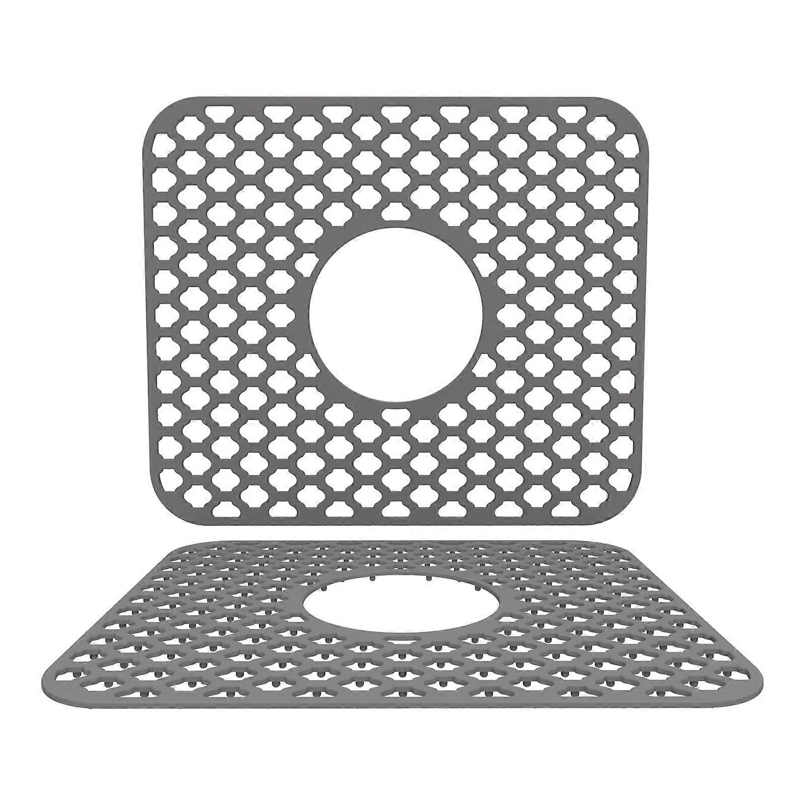 Non-Slip & Anti-Scratch Silicone Sink Mat - Grey with Central Hole