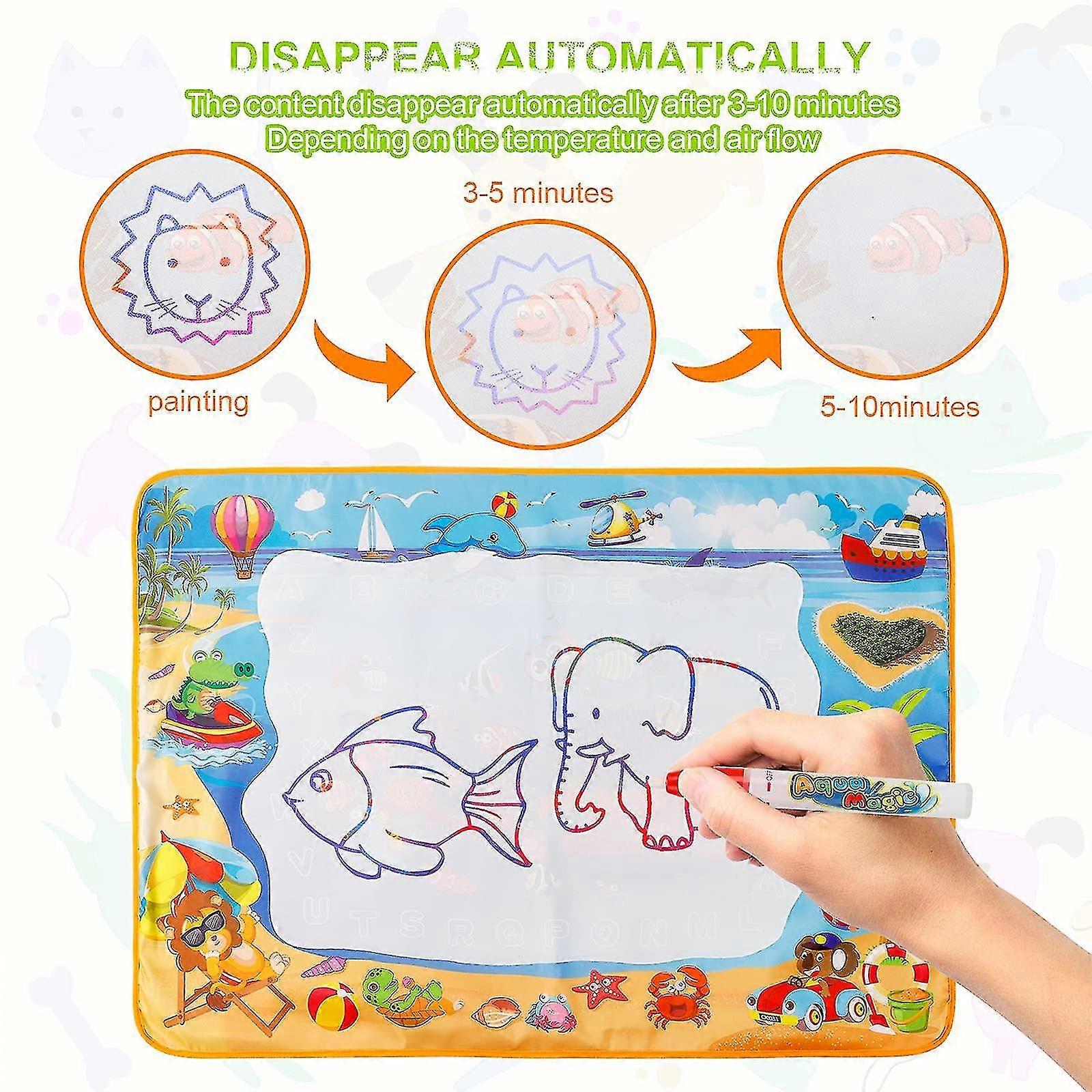 Water Painting Doodle Mat 100 X 70cm, Stencils And Shapes, Learning Water Draining Mat For Kids, Extra-large Color Mat, 25-piece Doodle Set