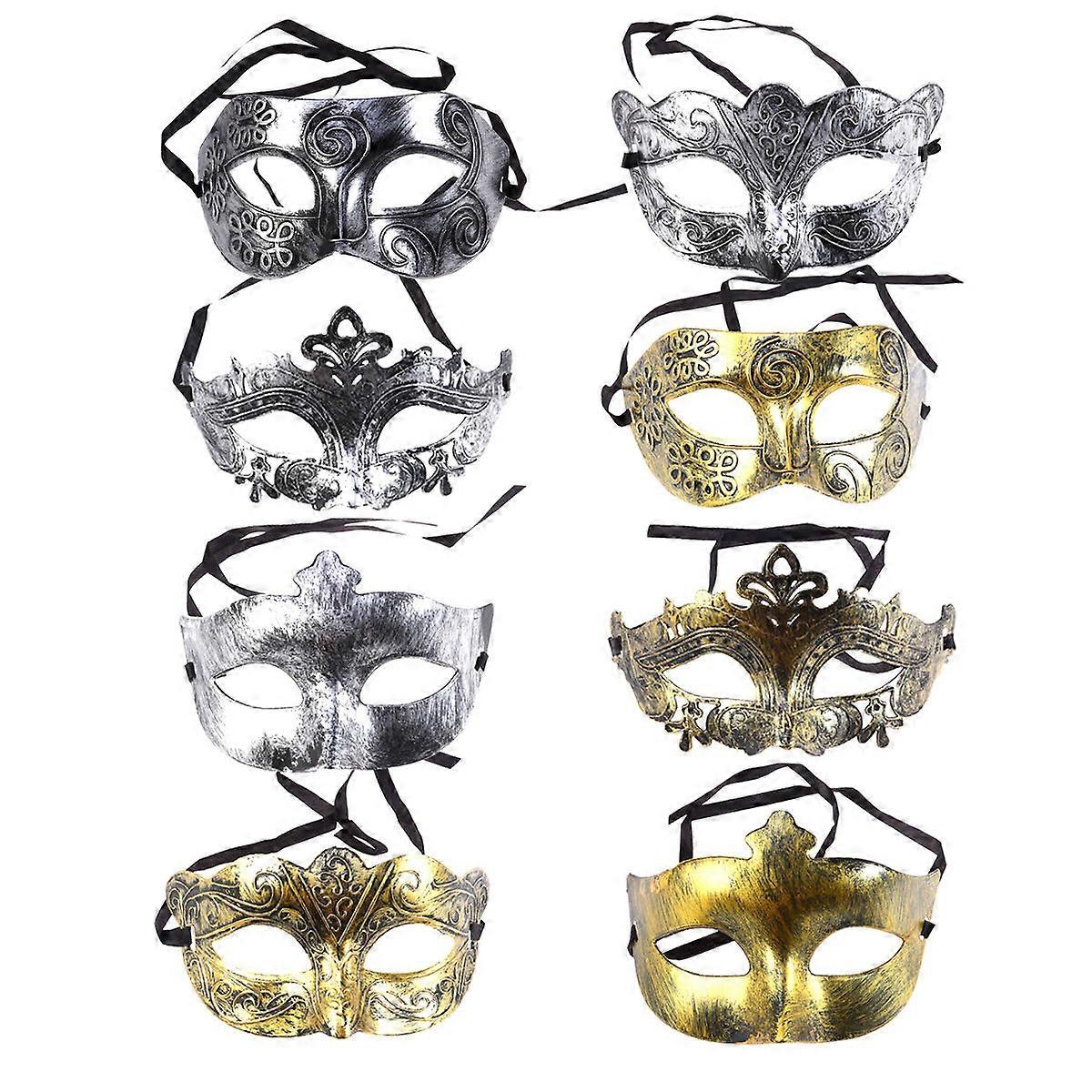 Masquerade Mask Half Vintage Costume Prop Accessory For Christmas Performance 17 X 9 X 6 Cm Golden Plastic 8Pcs