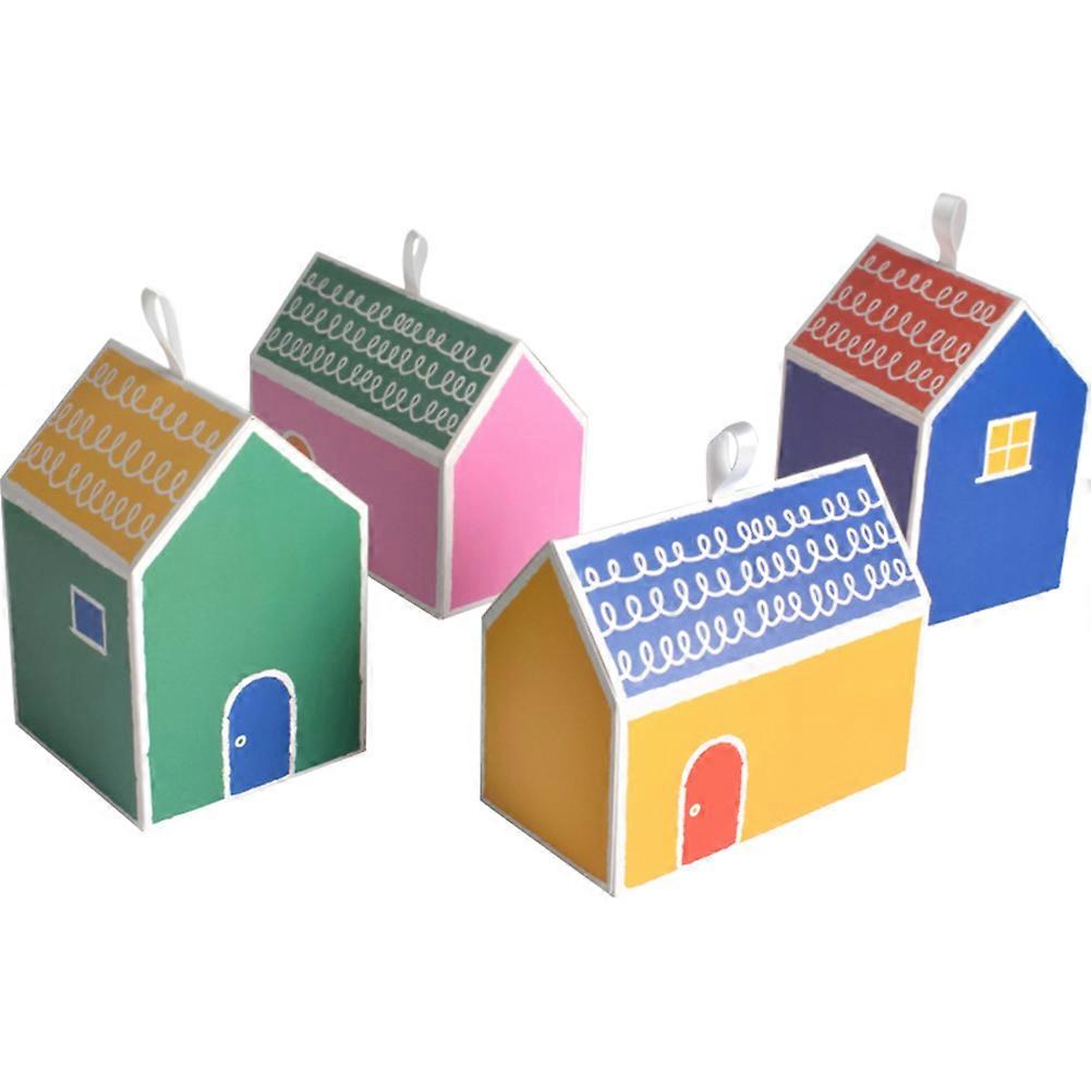 Wedding Party Favor Box Cookie Boxes House Shaped Handheld present Boxes Storage Green with Yellow Roof 16Pcs