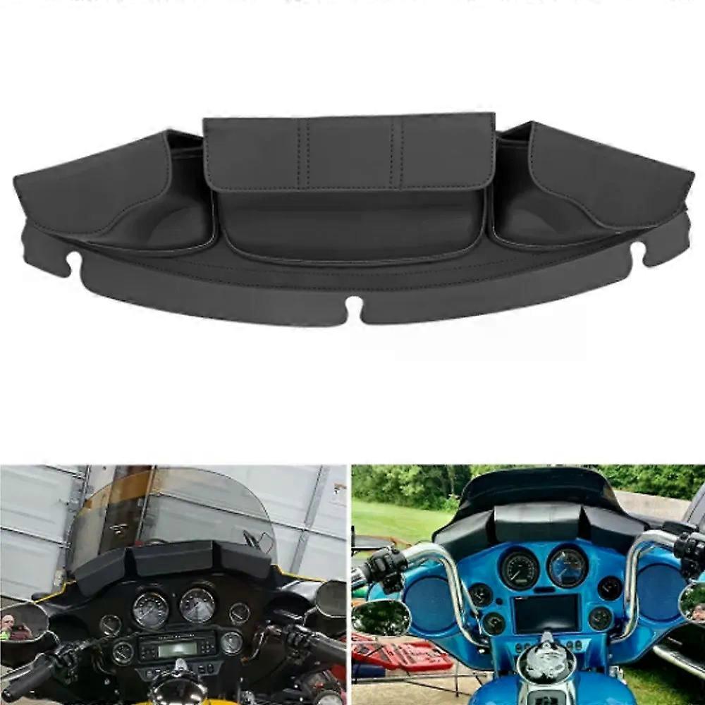 Feature: Motorcycle Windshield Bag 100% Brand New! Windshield Bag Set (3 Compartments). Material: high-quality leather and PVC. Rugged and Durable. Easy installation can be completed in minutes with basic hand-tools and no modification to your motorcycle. Size: As The Picture Shows Fitment: Fits For 2014-later Electra Glide, Street Glide, Ultra Limited and Tri Glide models. Package Include: 1x Windshield Bag (As Picture Shown)