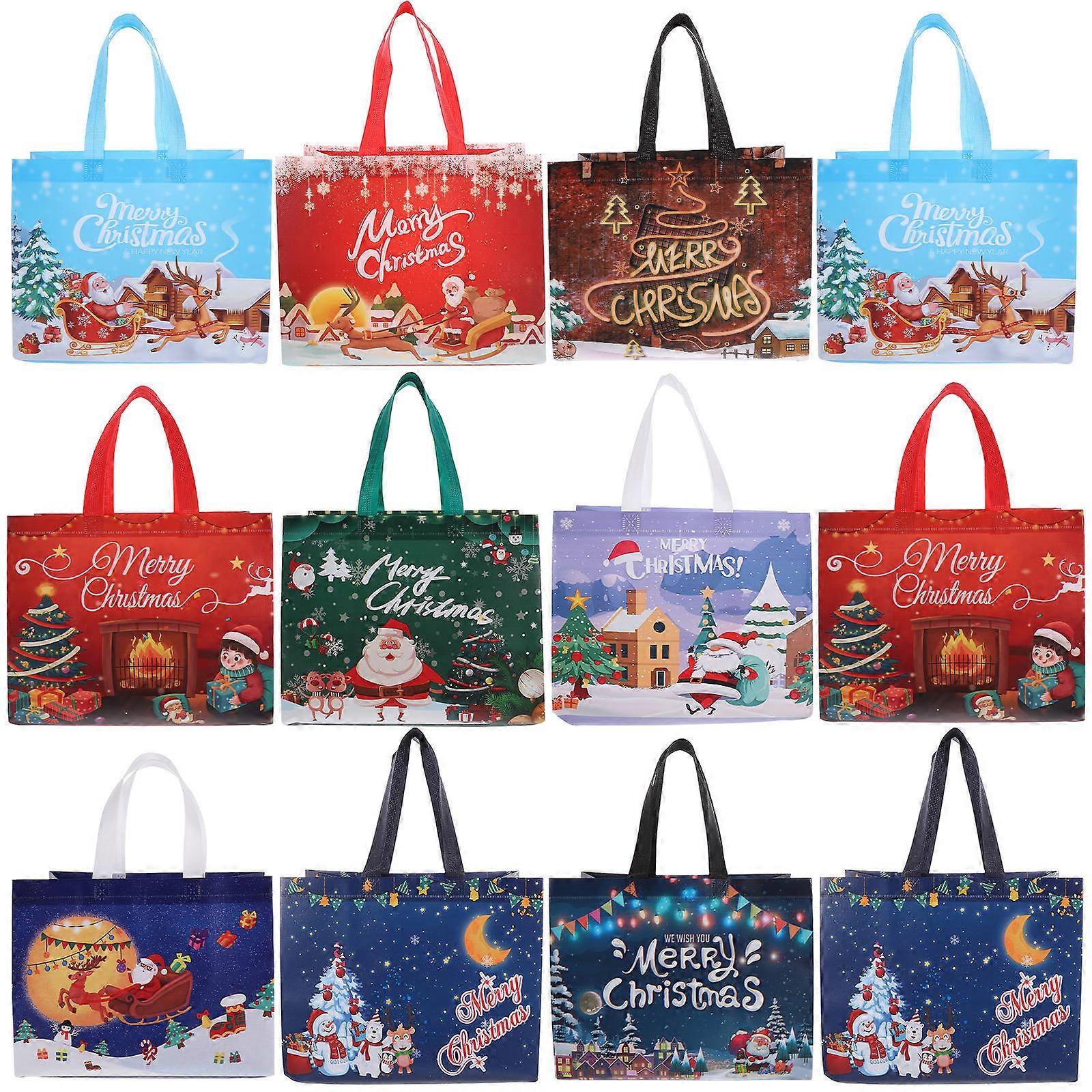 Portable Non-Woven Bags Tote Bags Easy to Clean Christmas Assorted Color Rectangular Shape 17x25x31.5cm 30Pcs