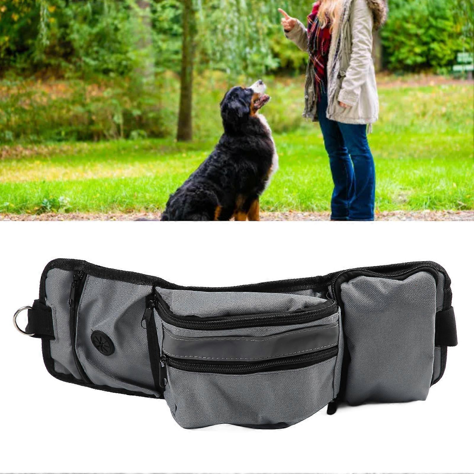 Dog Training Waist Bag Large Capacity Reflective Puppy Treat Waist Pouch with Bottle Holder Poop Bag Dispenser Gray