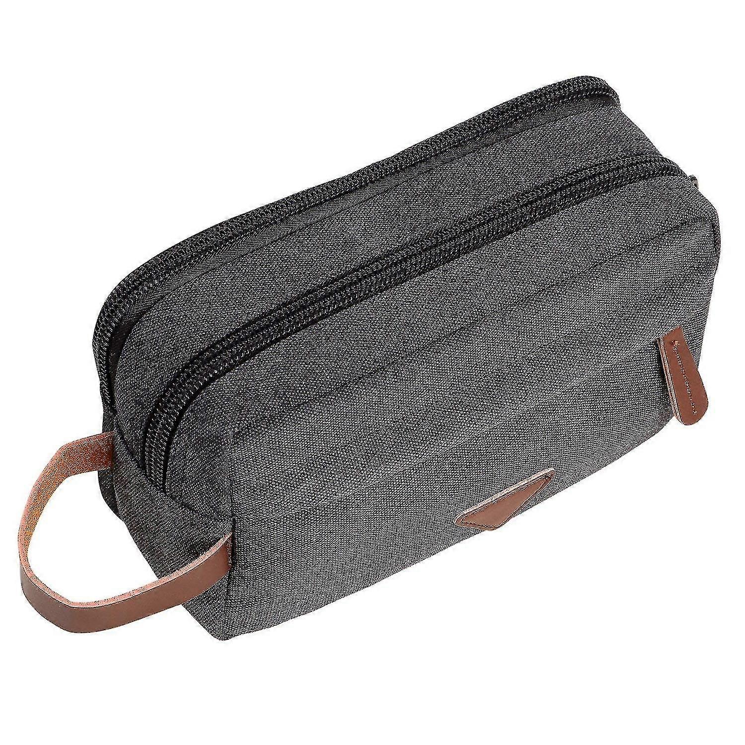 Mens Travel Toiletry Bag With Double Compartments Canvas Leather Cosmetic Makeup Organizer Shaving Dopp Kits - Black