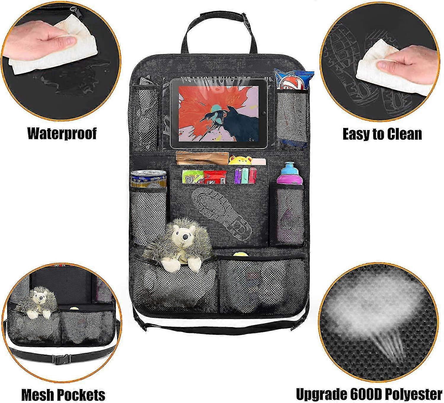 Car Rear Seat Storage Bag, With 10 Inch Table Frame, 9 Storage Pockets, Seat Back Protection Pads
