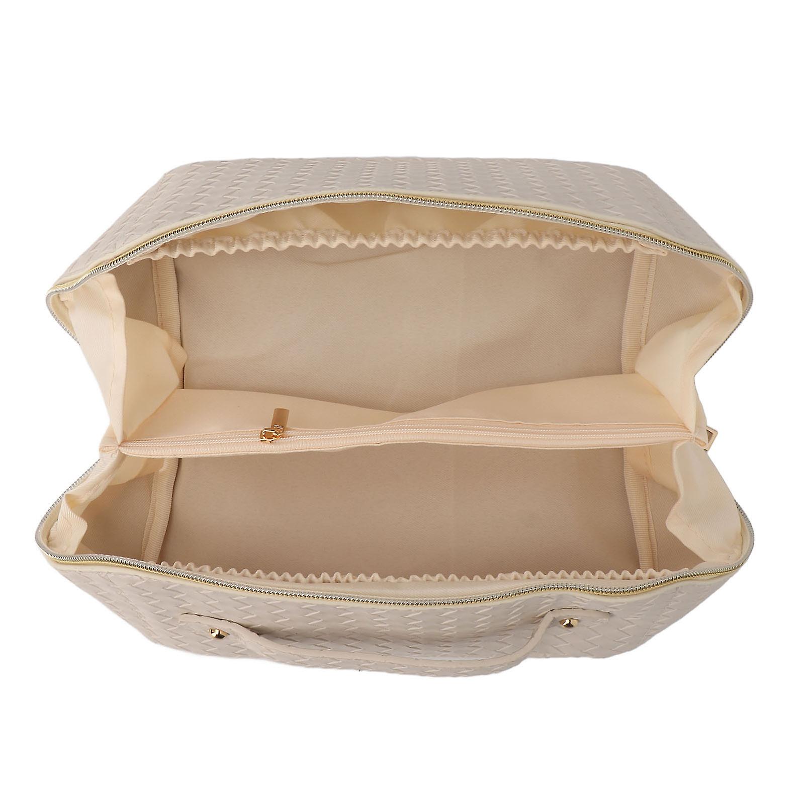 Makeup Storage Bag PU Leather Woven Pattern Zipper Closure Cosmetic Organize Pouch for Travel White Item Type: Makeup Storage Bag Material: PU Leather