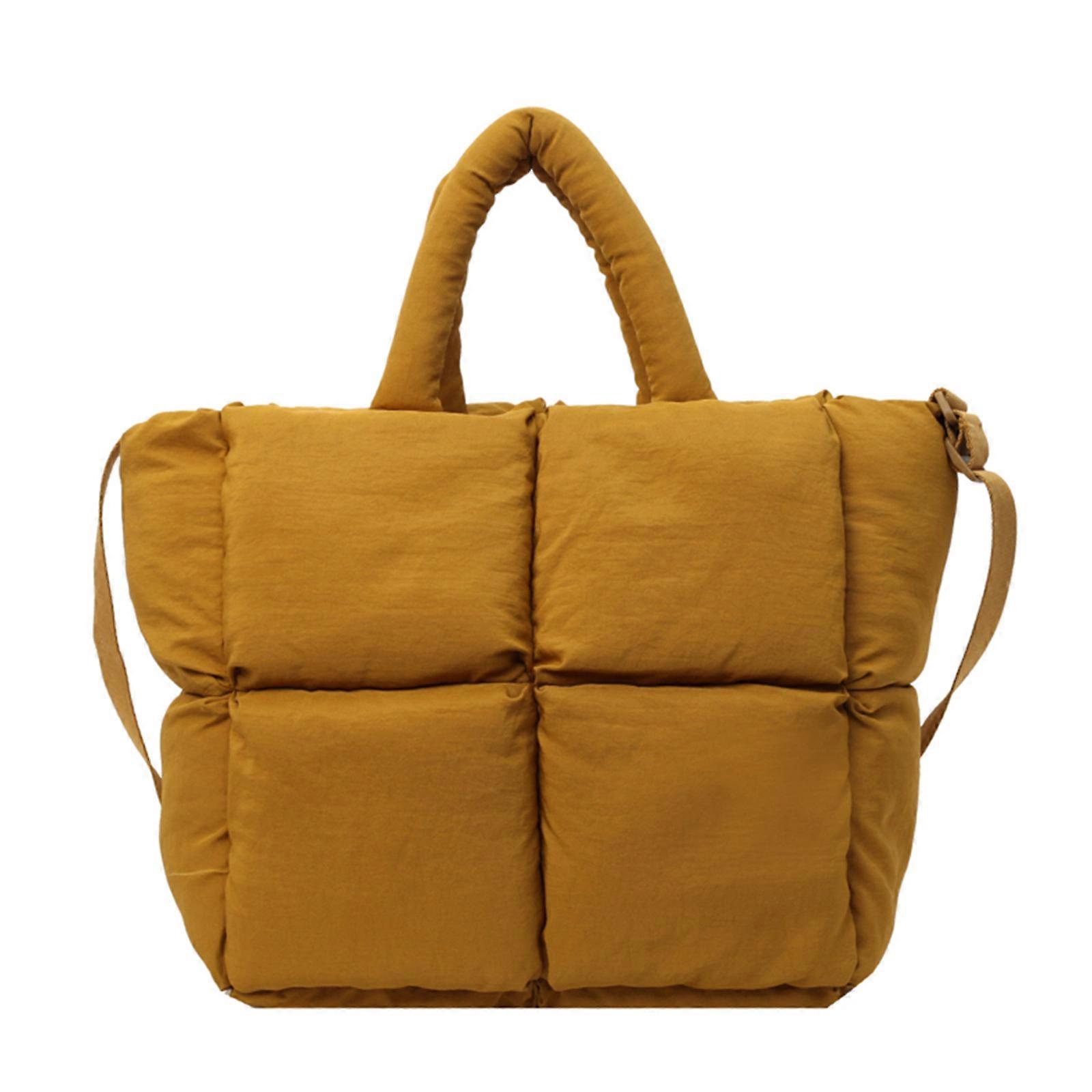 Functional Winter Shopping Bag Quilted Shoulder Bag with Comfortable Filling Crossbody Handbag for Women Yellow