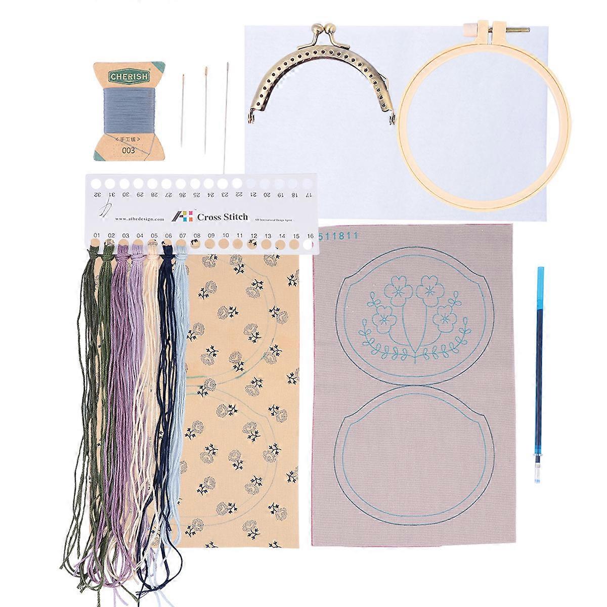 Diy Embroidered Coin Purse Embroidery Pouch Assorted Color 11X9.5CM Family Beginners 1Set