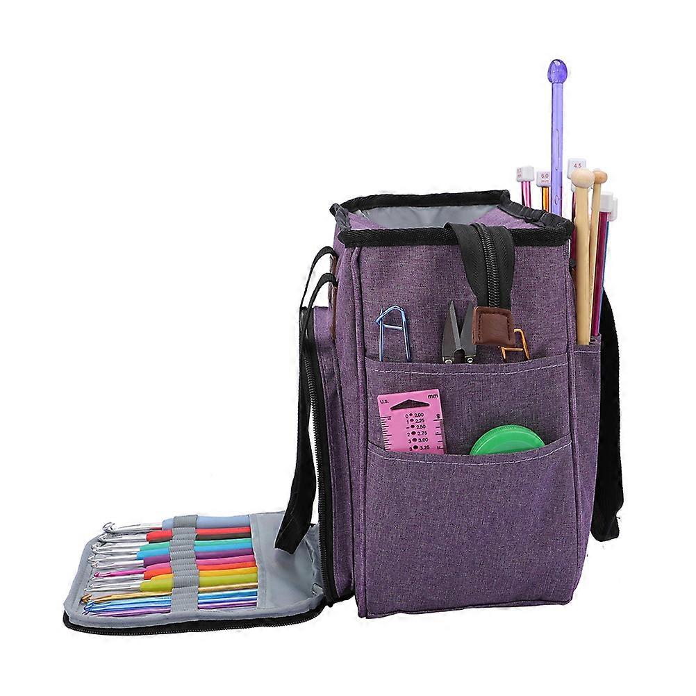 Purple Yarn Tote Bag Woolen Yarn Organizer Camping Knitting Tools Organizer 9.1×5.5×10.2in 1Set