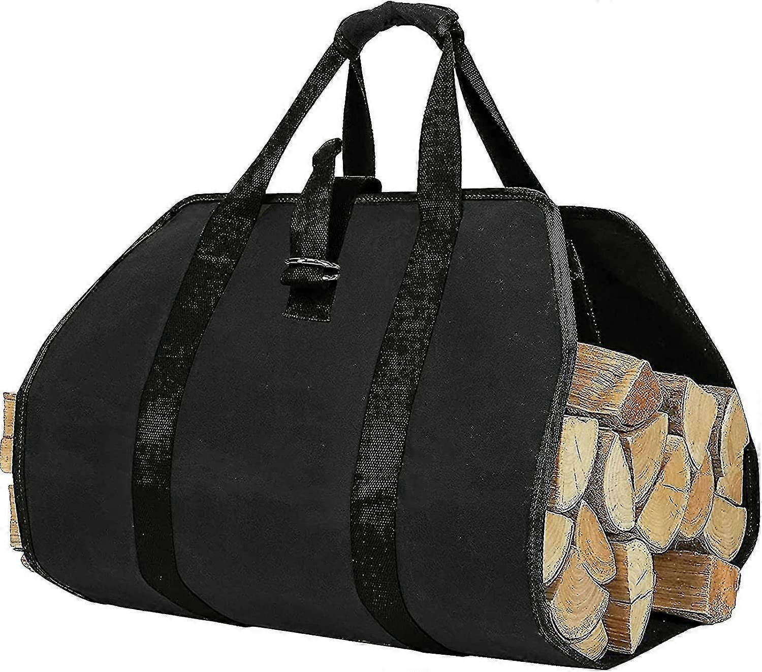 Canvas Firewood Carry Bag, Black - Water Resistant, Foldable Fireplace Log Bag, 99x46cm - Ideal for