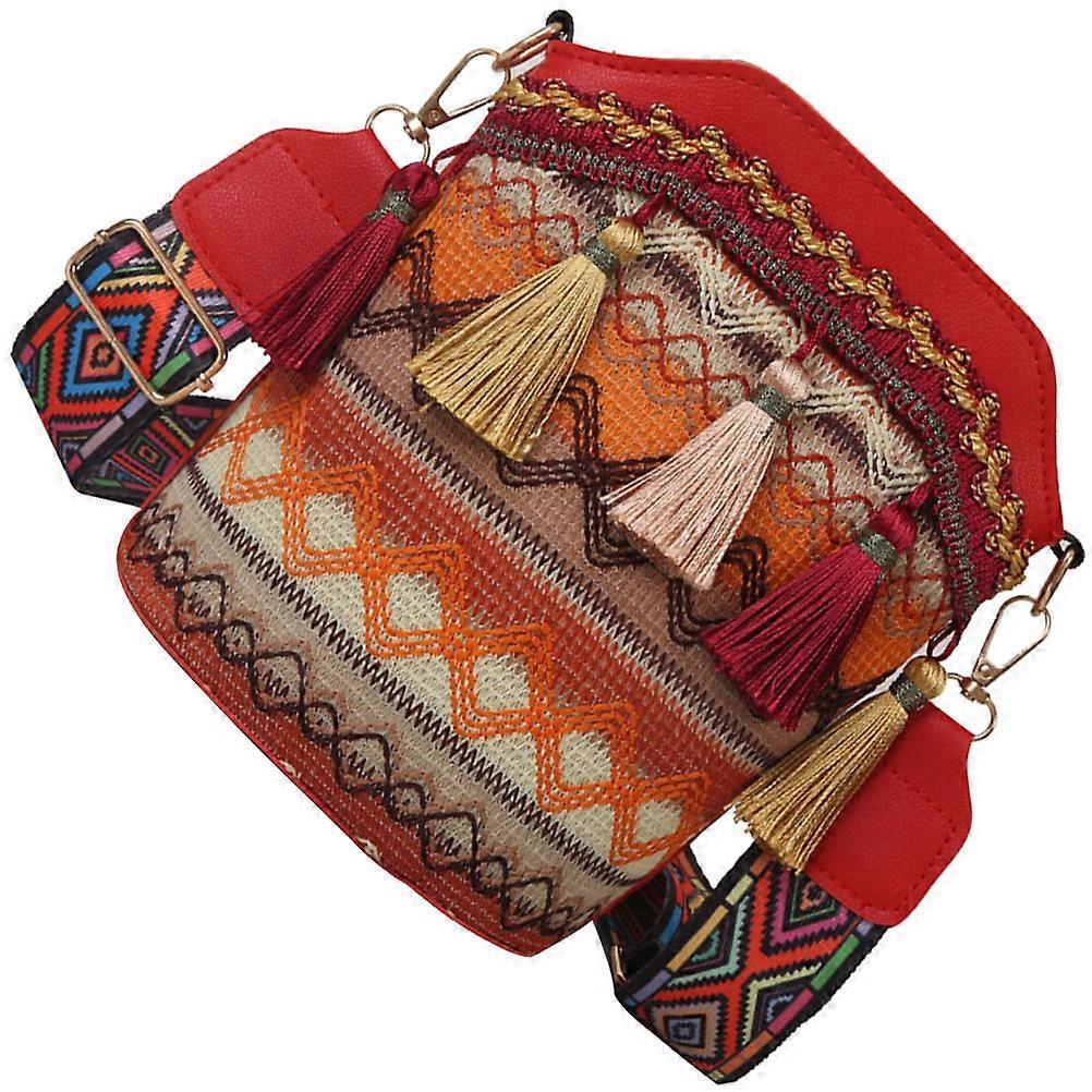 Ethnic Style Bucket Bag with Tassel, Embroidery Design Crossbody Purse, Durable Shoulder Bag for Travel and Shopping
