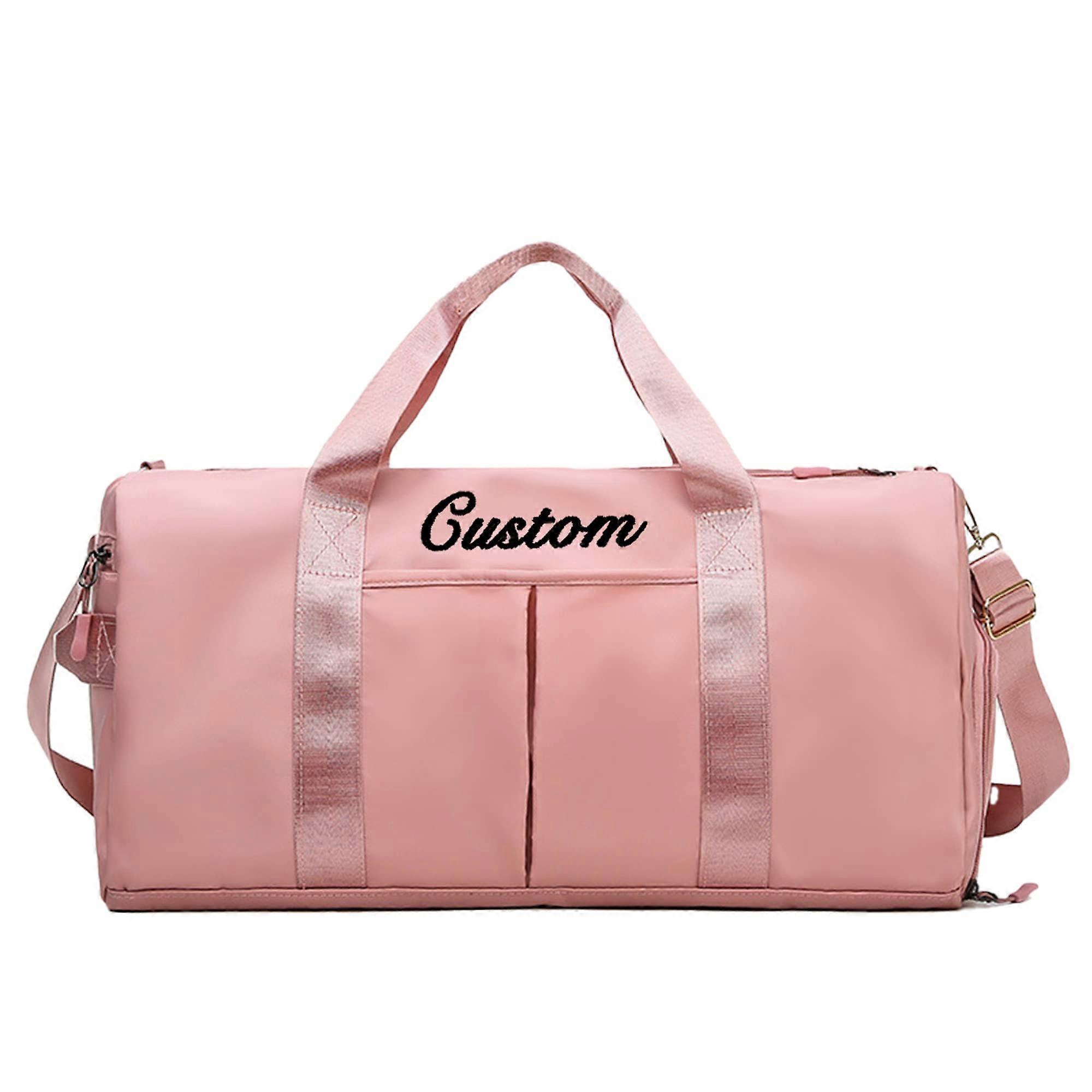 Travel Bag Custom Embroidered Sports Bag with Compartment, Pink