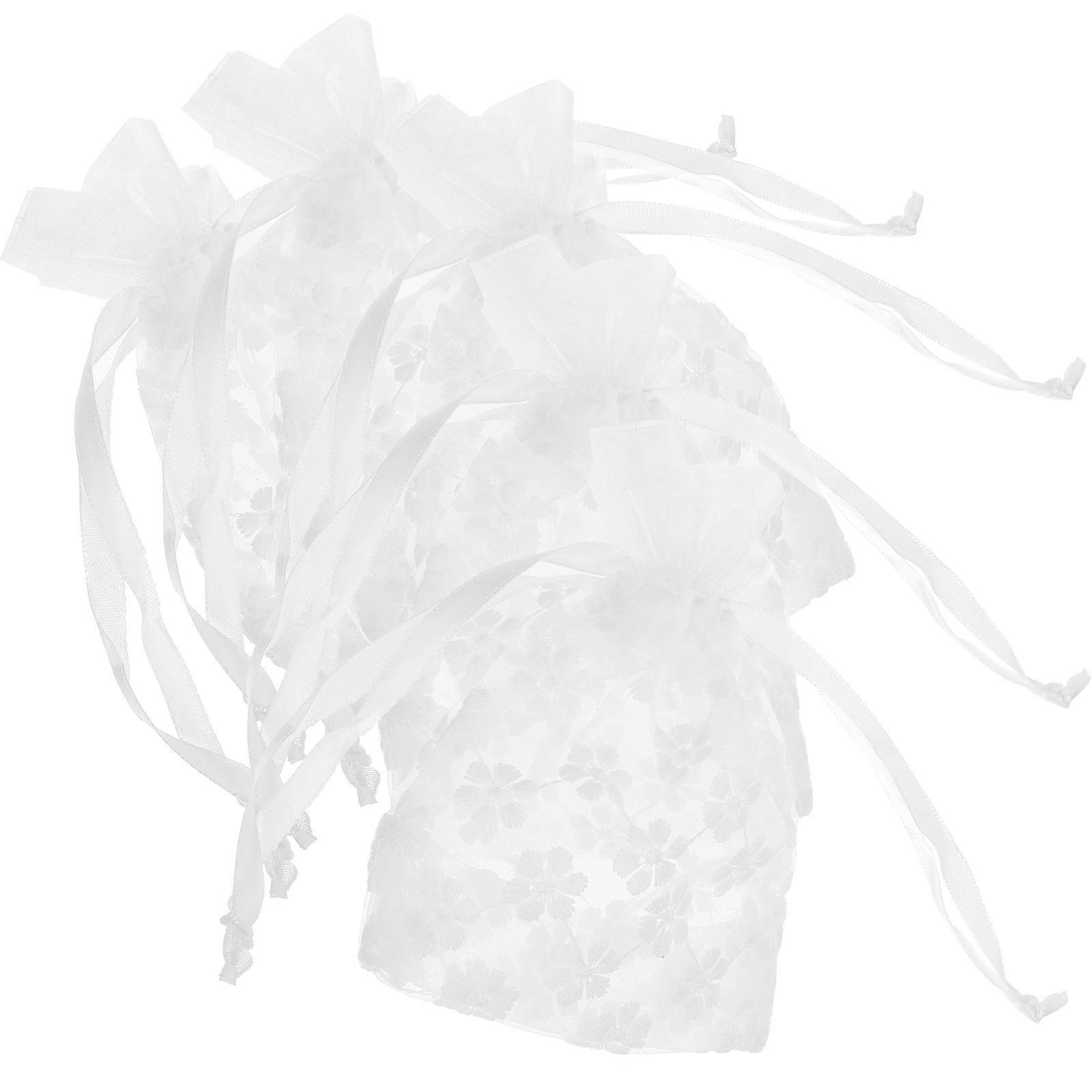 Mesh Bag Small Drawstring Gift Pouch Wedding Party Baby Shower White Fabric Storage 5Pcs
