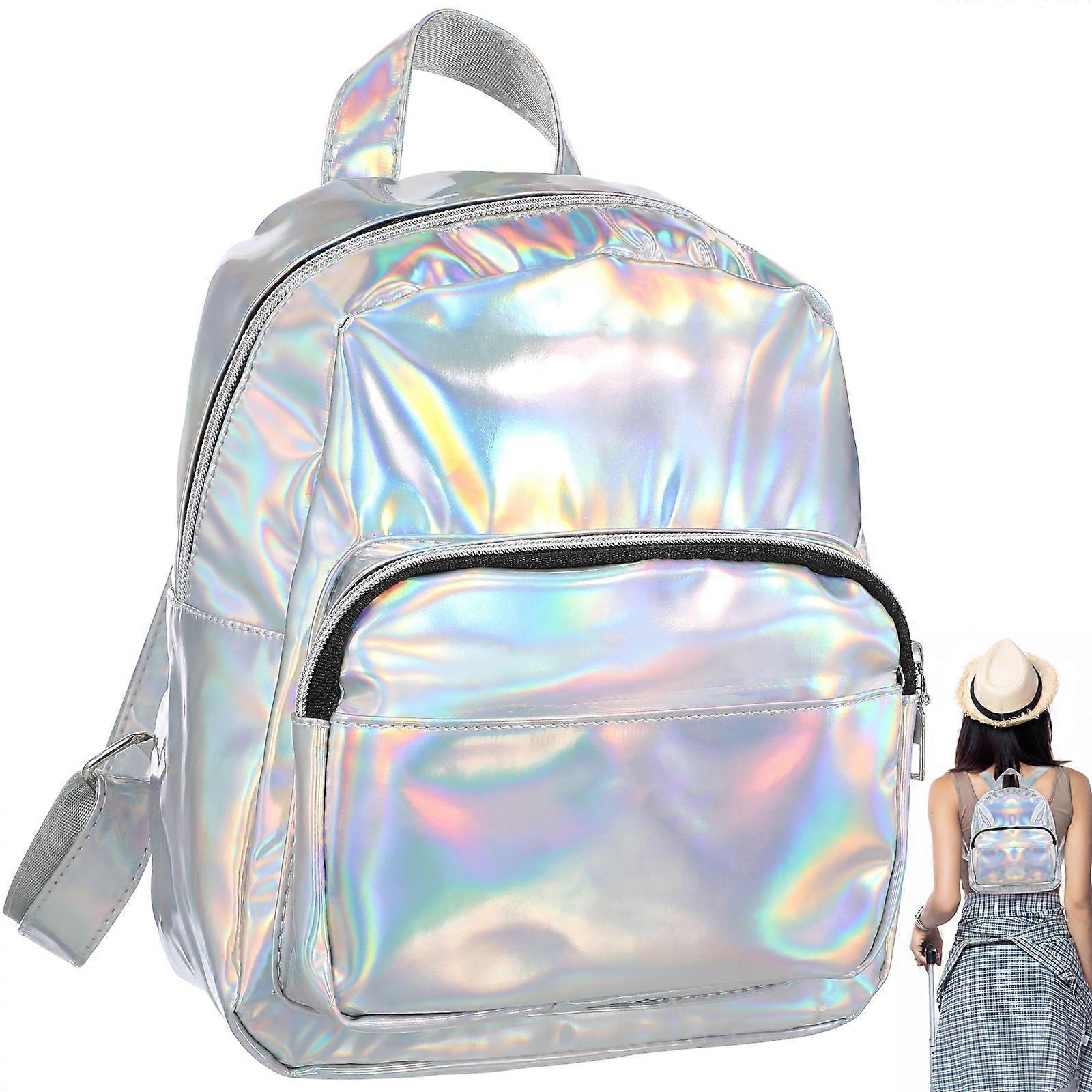 Chic Holographic Backpack Hologram School Shoulder Bag Satchel for Girls (Grey)