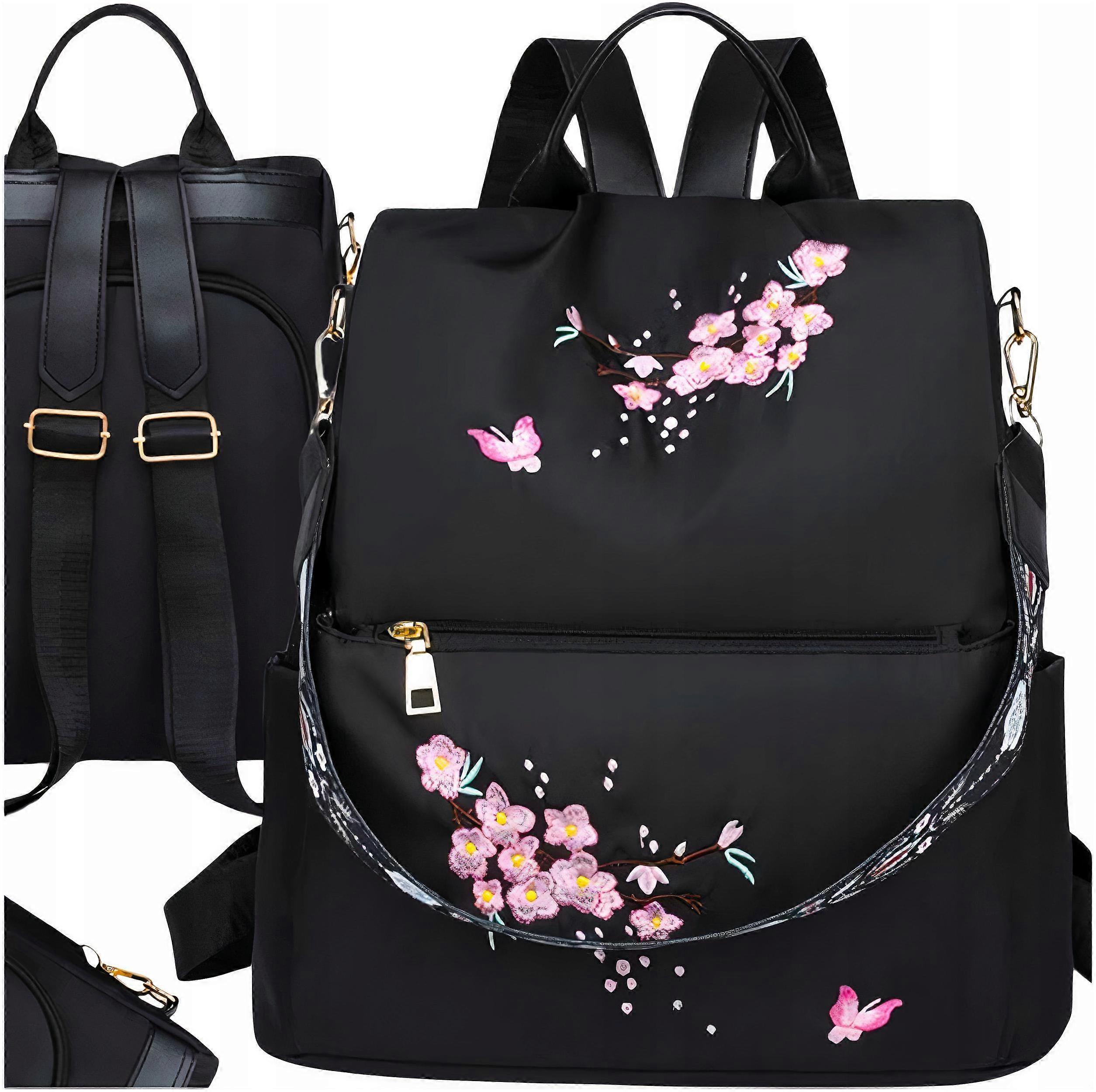 Backpack Black Roomy 2in1 Bag Waterproof School Hiking With Flowers